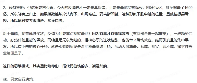 但目前的反弹量能不太够,如果持续缩量的情况下是极易变成下跌中继的。