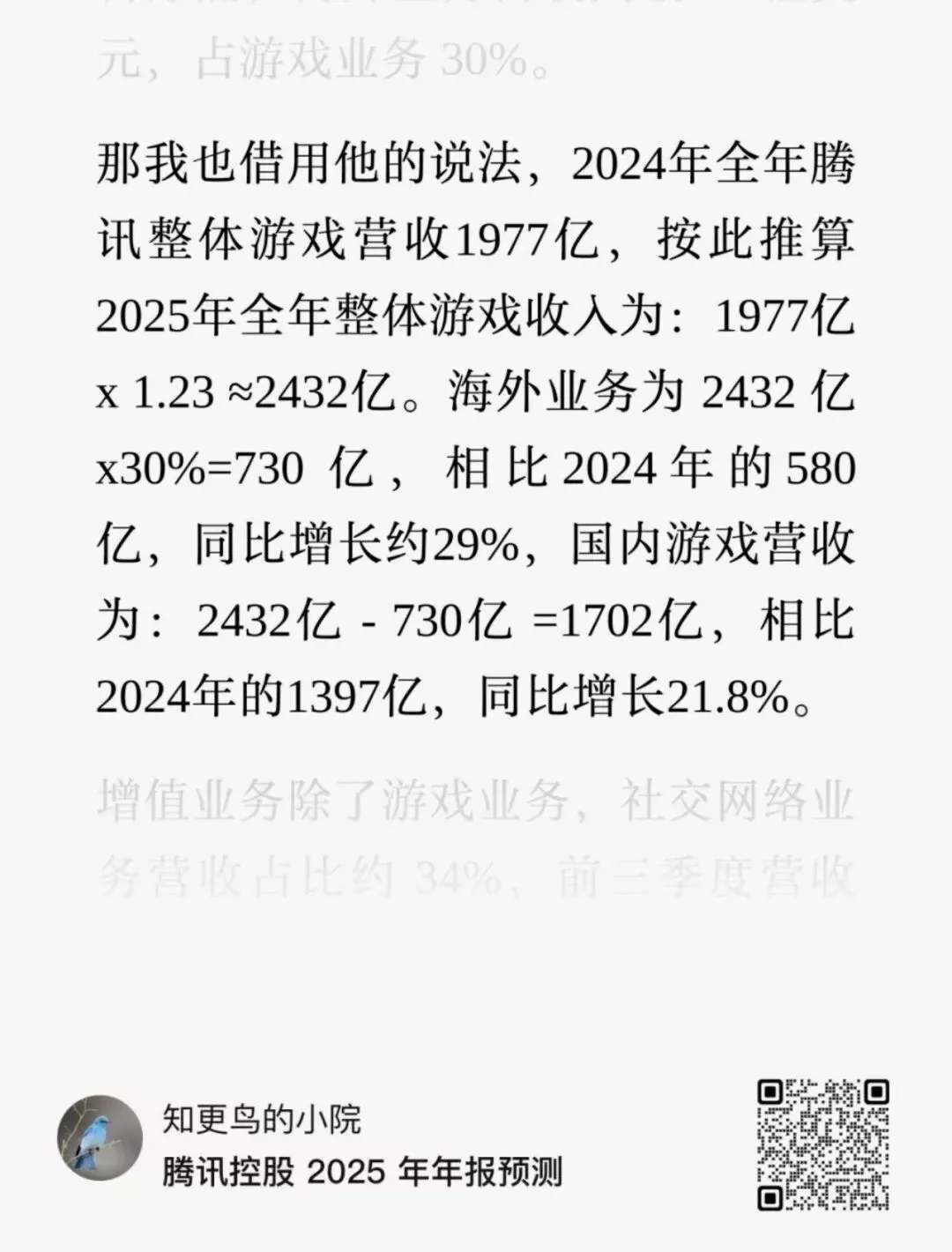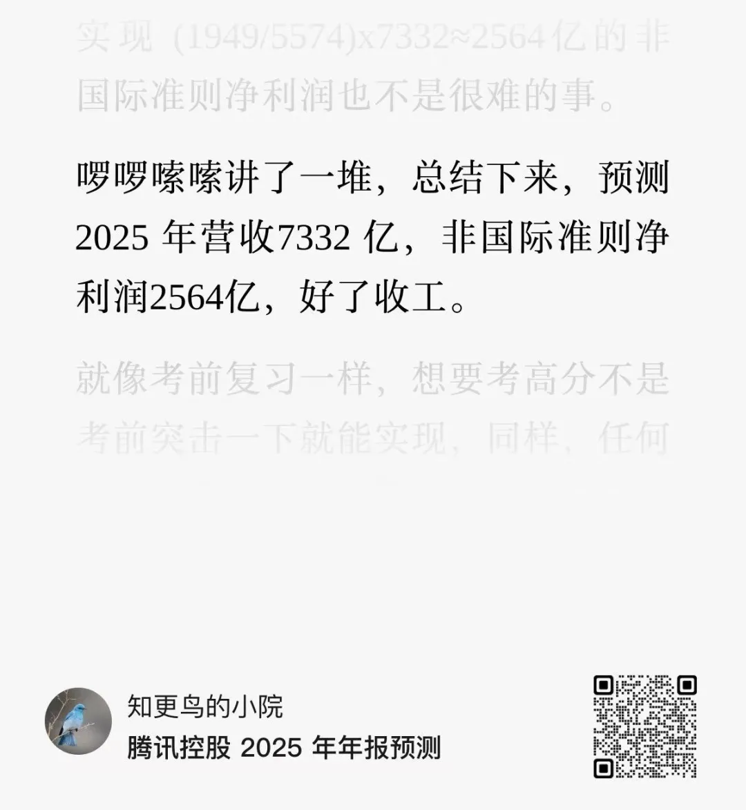 昨天我在文章腾讯控股 2025 年年报预测中对腾讯经营数据提前进行了预测: