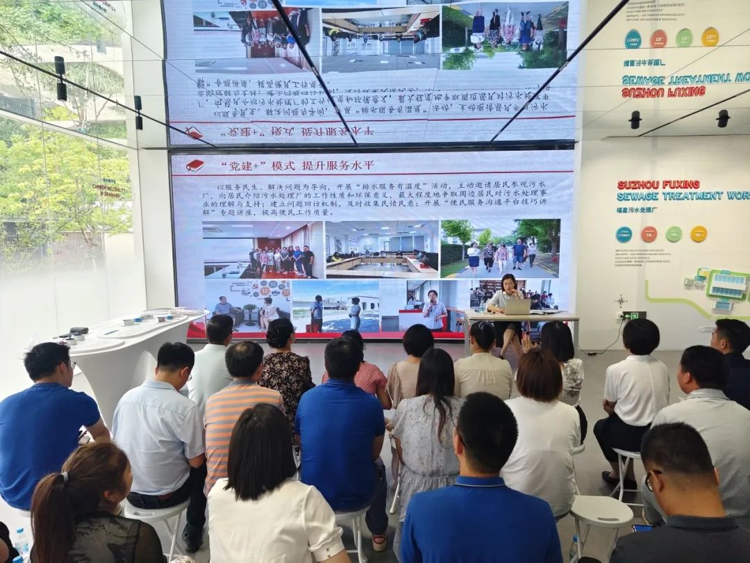 宣传推广功能。自2022年3月排水展示馆开馆以来,公司精心打造“红色苏排讲解队”,创新开展“相约大运河”“苏州水环境生态研讨会”等系列环保宣传活动。截至目前,共接待43批次1017人次的线下参观,1次线上直播,36.4万人次云端观看,取得了良好的社会效应。