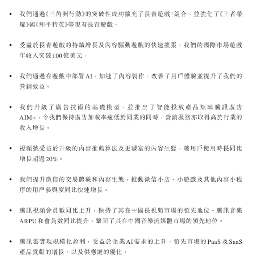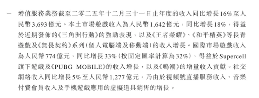 一个关键是游戏业务,财报数据显示去年本土市场游戏收入同比增长18%至1642亿元。