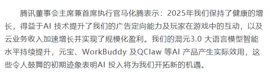 这几天大厂开始发财报,作为BAT三大厂里想来稳扎稳打的腾讯也发了财报,认真看了一下,鹅厂似乎用自己的方式,已经逐步穿越了这一见顶的AI周期。