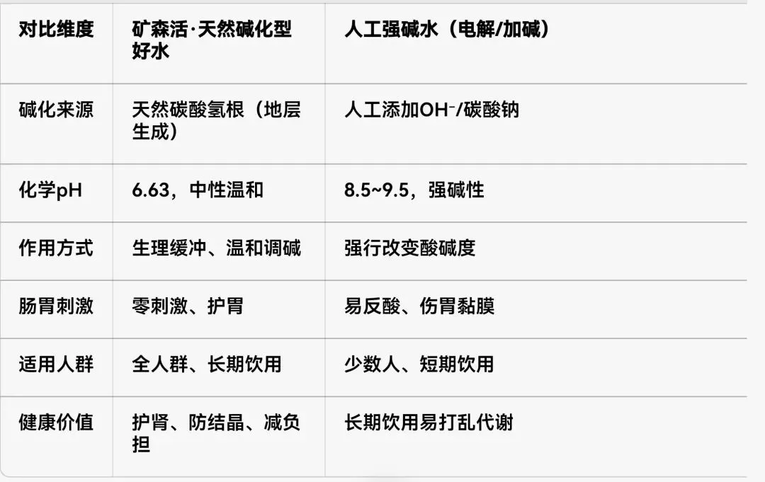 四、深度对比:天然碱化型好水 VS 人工碱水(核心区别)