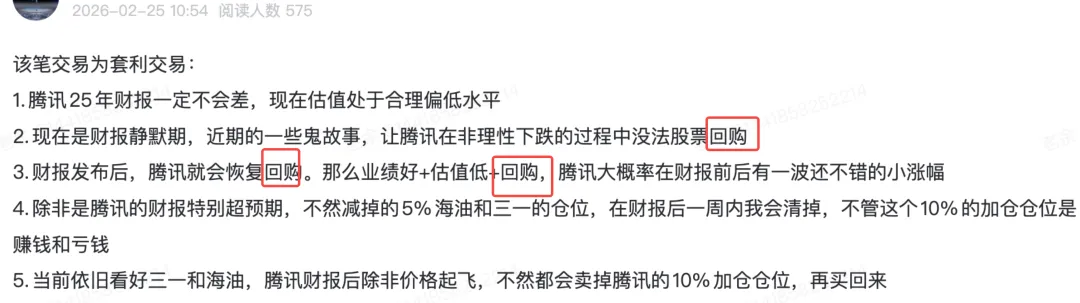 企鹅26年减少回购,那么这次我买财报的套利逻辑便不复存在了,明天会先清仓。