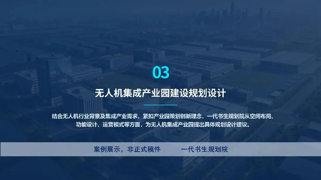 为精准对接政策导向与产业需求,一代书生规划院立足产业评估、产业规划领域,深度洞察无人机集成产业发展趋势,特编制出以下无人机产业园策划与规划建议,以期助力打造无人机全产业链集成发展新标杆。