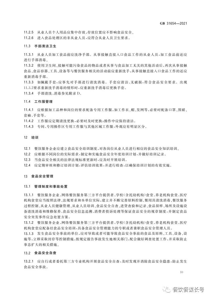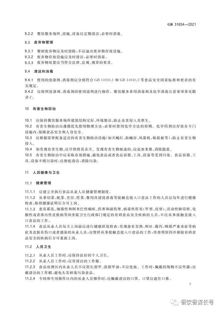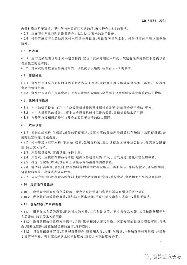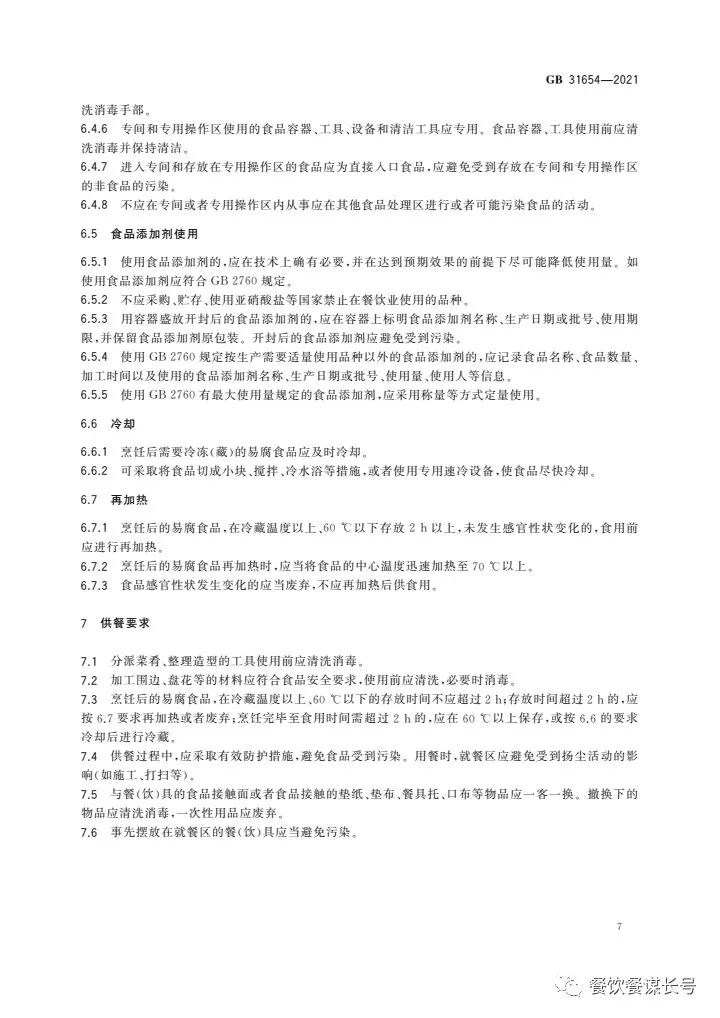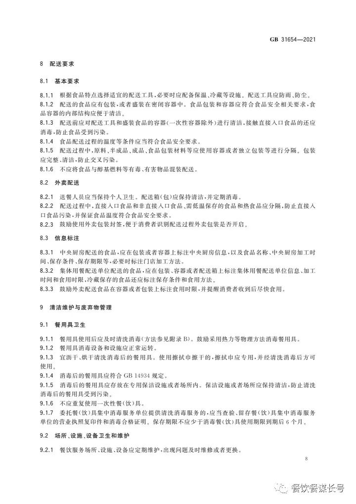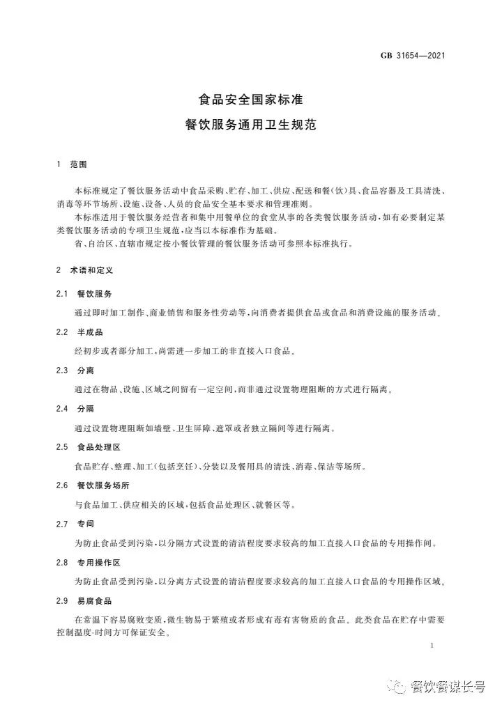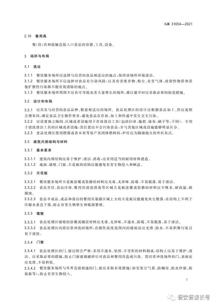 食品安全国家标准 餐饮服务通用卫生规范(GB31654-2021)