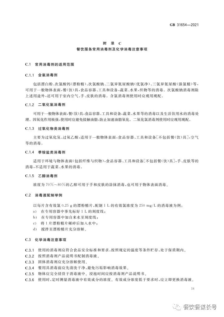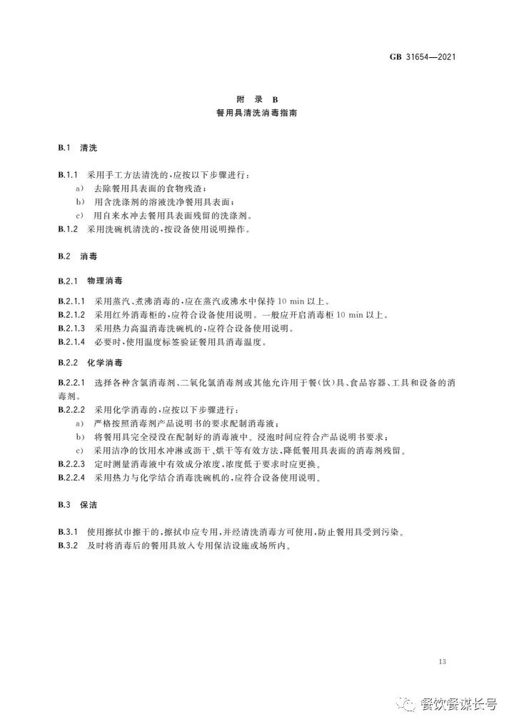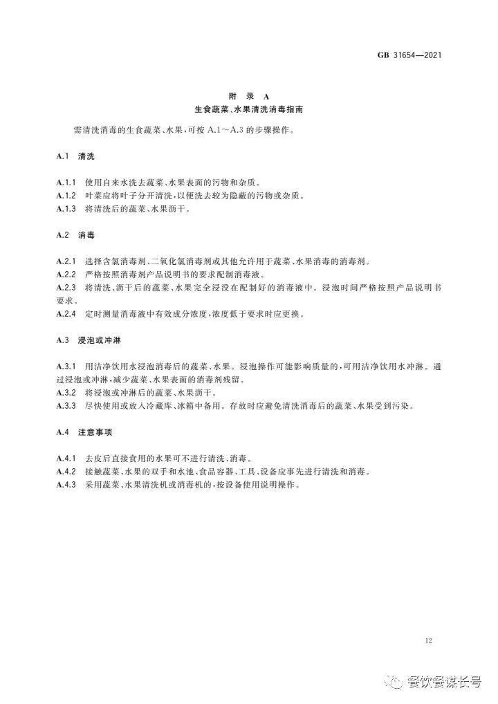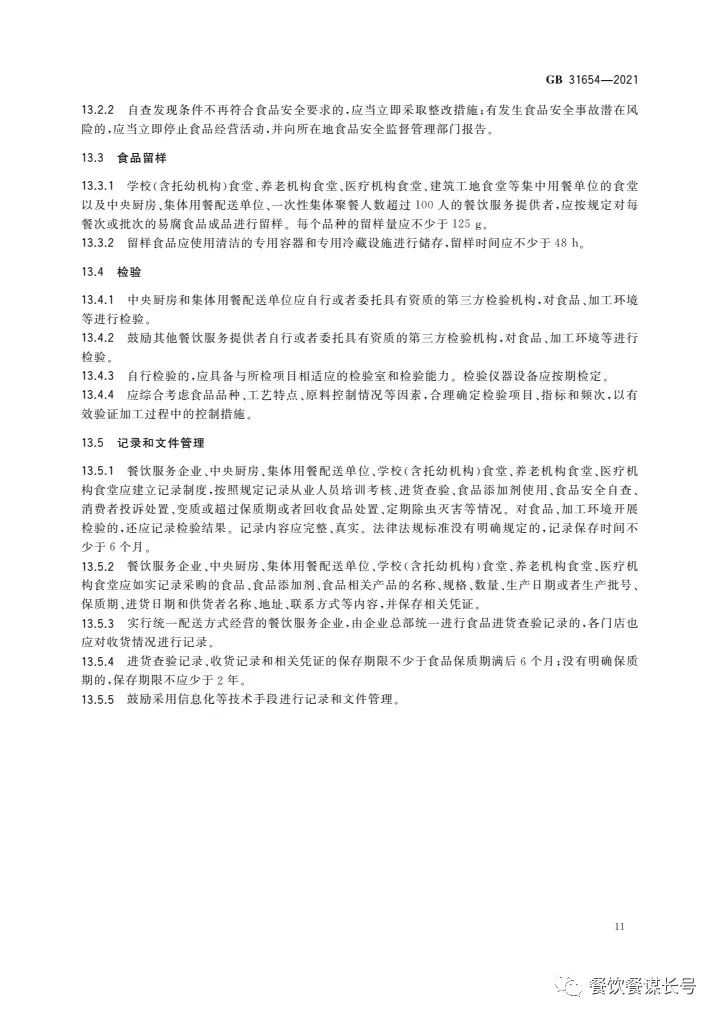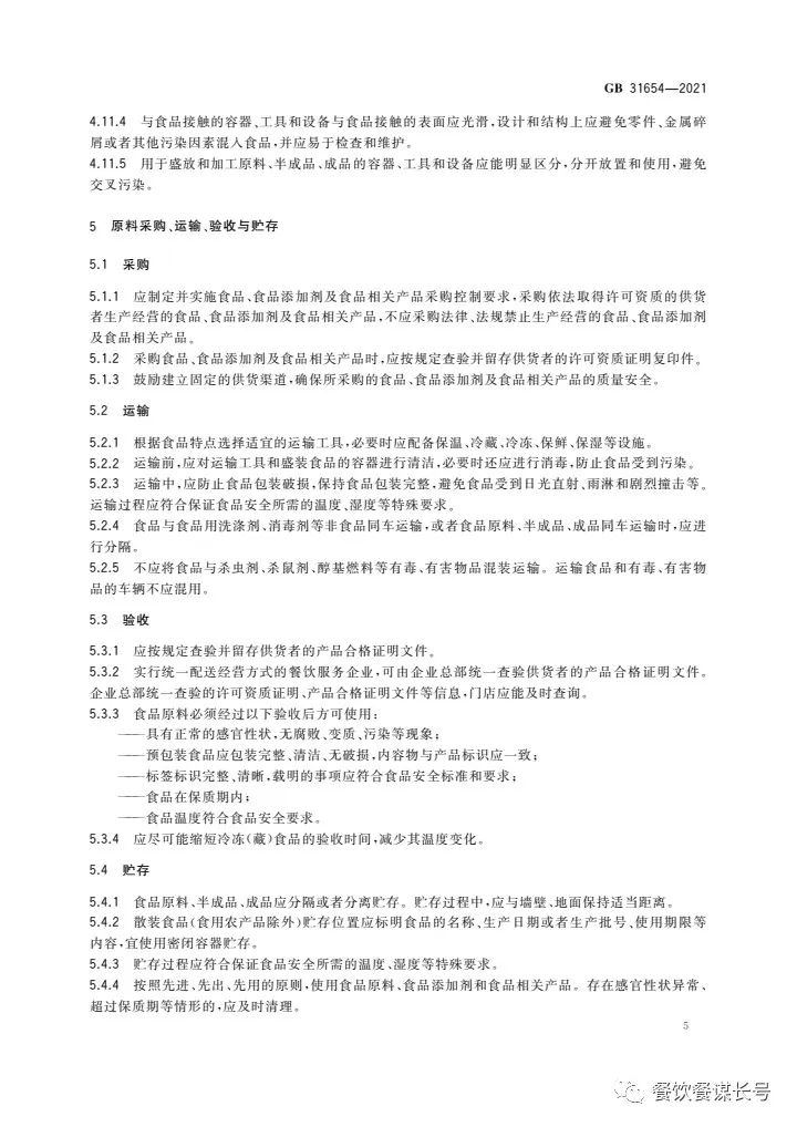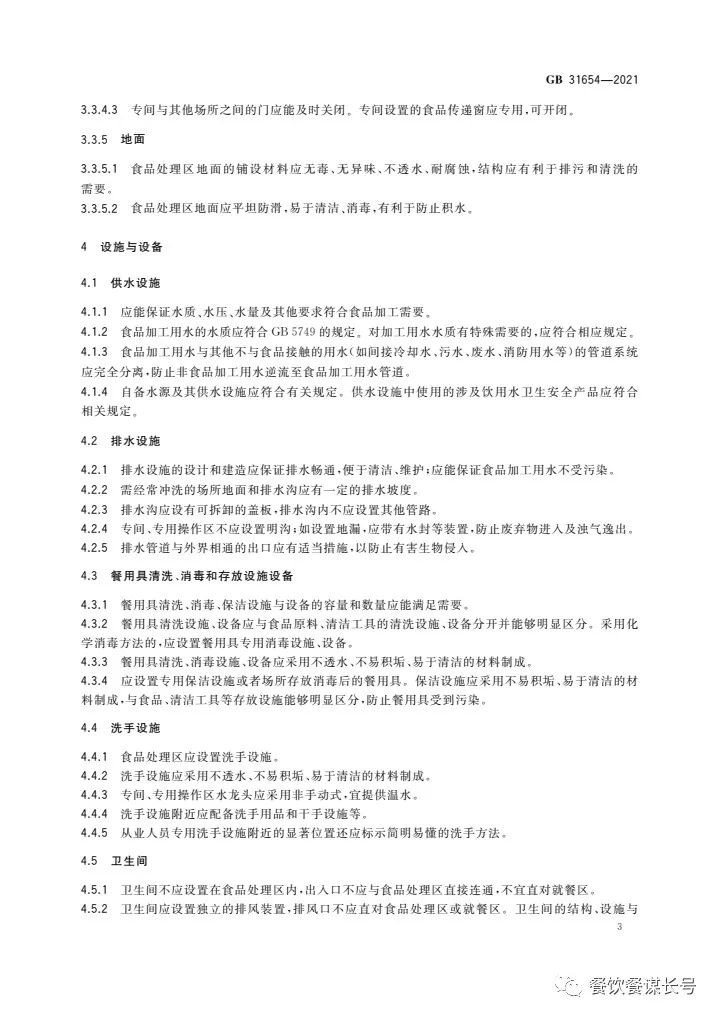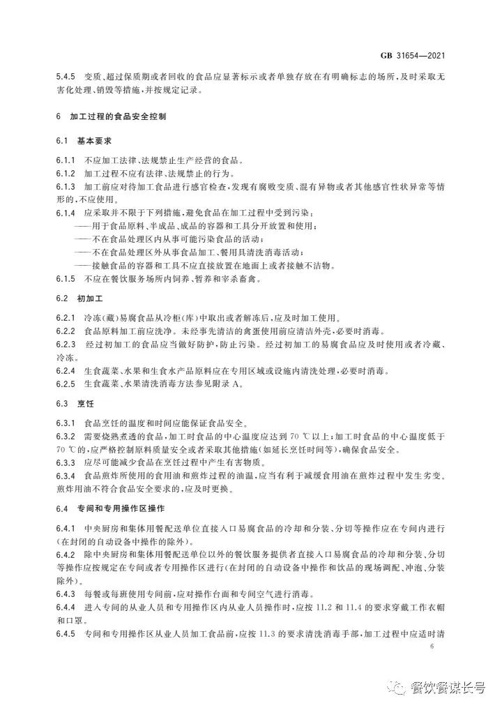 食品安全国家标准 餐饮服务通用卫生规范(GB31654-2021)