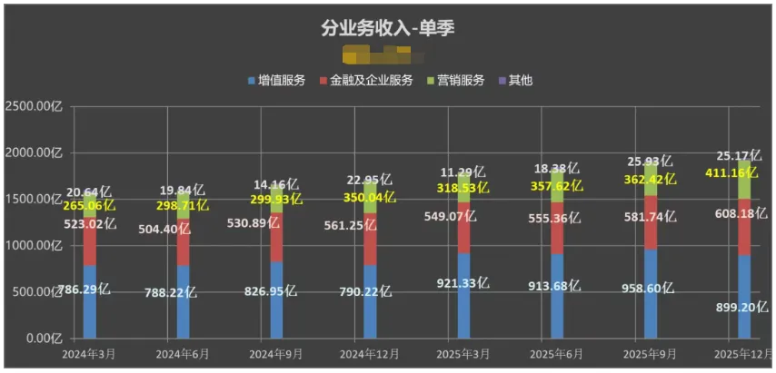 2025年营销服务收入同比增长19%至1,450亿元,是增速最快的分部,毛利率也从55%提升至58%。