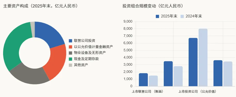 腾讯是全球最大的科技投资公司之一。从资产负债表看,2025年末上市投资公司(不含附属公司)的公允价值合计约6,727亿元,较三季度末的8,008亿元有所下降,主要反映部分持仓市值缩水。联营公司投资公允价值则从2,801亿元增至3,493亿元,表现较好。非上市投资账面价值增至3,631亿元,潜在价值难以准确估算但通常被市场大幅折价。