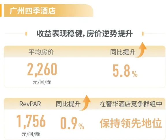 具体来看,越秀房产基金旗下的广州四季酒店完成首批客房翻新,落地近零污染精装修技术,平均房价同比提升5.8%达2260元/间/晚,RevPAR同比增长0.9%,在奢华酒店竞争群组中保持领先地位。