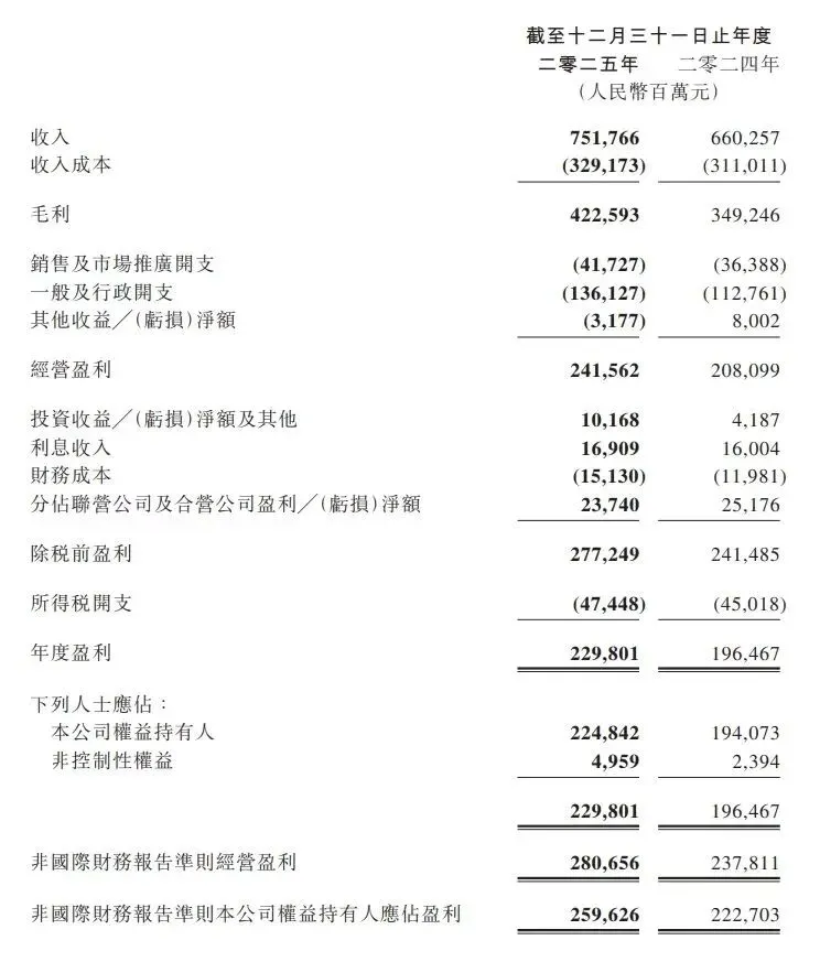 ? Non-IFRS净利润:2596.26亿元,同比增长17%;Non-IFRS经营盈利2806.56亿元,同比增长18%