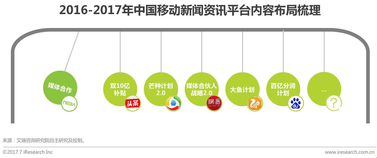 优质内容能够获取人们的注意力,从而实现流量的收集、分发和变现,已经成为各移动新闻资讯平台的竞争核心。一方面,品牌媒体内容成为了各平台关注的重点,平台常通过建立版权合作或邀请账号入驻等形式导入其内容。另一方面,优质自媒体也成为了各平台争夺的资源,平台通过推出补贴机制、扶持战略、创业服务等方式吸引自媒体的入驻。