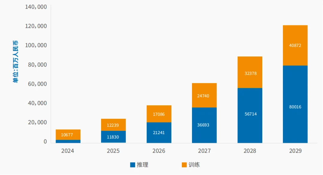 图1 中国GenAI IaaS服务市场(训练/推理)预测,2024-2029