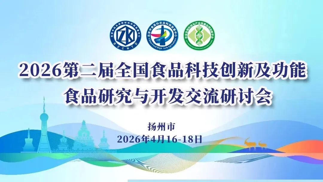 随着人们对食品营养健康和质量安全的关注度不断提高,食品行业也面临着越来越多的机遇与挑战,为推动我国食品及交叉行业的深远发展深度讨论、交流食品领域最新研究成果,助力食品工业发展,提高人民健康水平,促进食品产业可持续健康发展,2026年4月16-18日在扬州市举办“2026第二届全国食品科技创新及功能食品研究与开发交流研讨会”。进一步推进健康食品学科及产业化的发展,共同探讨交流最新的研究成果。在此,我们诚挚的邀请您出席本次大会,共聚人脉、共享资源、共谋发展!现就有关事宜通知如下: