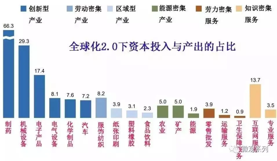 全球化1.0时代,上游研发是被忽略的一部分。企业主要精力是放在多招廉价工人,多生产,或者是绞尽脑汁推出各种销售手段,来提高销量。而在全球化2.0时代,新的趋势是中游生产端的价值正在不断减弱,上游研发端的重要性则不断上升,下游的营销和售后服务,也有一定比例的上升。也就是说,一场重研发和营销,轻生产的价值链变革,已经开始。
