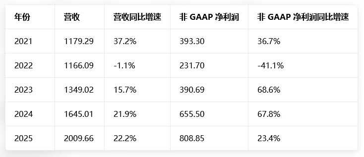 本文继续聊AI板块美股的社交平台巨头——Meta(曾经叫Facebook)。前面聊英伟达和谷歌时说过,大语言模型的爆发靠的是三要素,一个是神经网络算法,一个是巨量的互联网数据,一个是算力爆发。这三要素中的算力爆发的最大贡献者,是英伟达。而谷歌虽不是神经网络算法的提出者,但却对算法改进和工程应用做了很大的贡献。那本文要聊的Meta对AI大模型的爆发相比较而言,贡献就比较少了。更多的是追随者的角色。但是Meta是一家做社交平台的公司,旗下有Facebook、Instagram、WhatsApp、Messenger、Threads等社交平台,全球月活49.2亿人,接近全球互联网用户总量的60%,这个数据就很恐怖了。我们知道社交平台的商业模式是很好的,用户粘性很高,替换成本大,拥有巨大的流量入口,可以说全球49.2亿人的流量入口,是其最大的护城河。这一点我们从国内腾讯旗下的微信和QQ就知道社交平台流量入口的价值了。腾讯基于流量入口,通过社交网络、广告、游戏和支付金融等业务赚取庞大的营收和利润,构建了社交商业帝国。不过Meta的营收和利润与腾讯不一样,它主要通过广告,不做游戏和支付。不过也反过来可以看出来,腾讯通过微信广告变现还是很克制的。前面说了英伟达处于AI产业链的上游,卖基础设施。谷歌是既处于AI产业链的上游,自研TPU芯片和云平台建数据中心。也处于产业链的中游,做大模型。当然也有产品涉及到下游的,如智能驾驶等。而Meta其实上中下游也都涉及,当然最主要的是中游Llama大模型,赋能旗下各大社交软件和广告服务。上游也是疯狂建数据中心,自研AI芯片,下游也有VR硬件和AI眼镜等业务。Meta在2025年启动了史无前例的算力基础设施建设,全年资本开支720亿美元,2026年计划投入1150亿-1350亿美元,核心投向AI数据中心、自研AI芯片、算力网络三大方向。那么本文我们看看社交平台巨头Meta的2025年年报,看看AI投入那么大对其主营业务是否真的有帮助?还是只是泡沫呢?2026年1月28日,Meta Platforms发布2025年第四季度及全年财报。这份财报体现了AI全面赋能核心广告业务实现量价齐升,打破了市场对“生成式AI颠覆社交广告商业模式”的质疑。公司战略也从元宇宙叙事转向“个人超智能”,以千亿级资本开支押注AI全栈能力建设。公司第四季度,营收598.93亿美元,同比增长24%;净利润(非GAAP)286.58亿美元,同比增长28%。公司全年,营收2009.66亿美元,同比增长22%;净利润(非GAAP)808.85亿美元,同比增长23%。GAAP净利润为604.58亿美元,同比小幅下降3%,低于非GAAP净利润,主要是三季度,美国《One Big Beautiful Bill Act》法案实施,Meta计提了159.3亿美元的一次性非现金所得税支出。分季度来看,Q1-Q4单季营收分别为423.14亿美元、475.16亿美元、512亿美元、598.93亿美元,同比增速分别为18%、22%、26%、24%,连续四个季度超出华尔街分析师预期。这个数据净利润增速和谷歌差不多,营收增速却快于谷歌,那么大体量,还有这么快的增速,优秀啊。大象飞舞,再次具象化。回顾过去5年,Meta的营收和净利润除了2022年是一直增长的,且增速还不低。5年时间,营收增长1.7倍,净利润增长2倍,这么大的体量,这个增速,跟谷歌很像。我想这也是为什么2023年下半年到现在美股走大牛的根本原因。所以还是那句话,千万不要觉得,一个公司体量太大,就没有增长空间了,其实不然,一定要认真去研究。就像邱国鹭说的,价值投资,不要去追星星,而是找月亮。大公司,各方面都很强的时候,即护城河足够深的时候,往往还会有一定的成长空间,在便宜的时候介入,是很不错的投资机会。Meta2025年这份财务数据再次证明,AI的巨额投入并不是“增收不增利”的瞎投入,而是实实在在的带来了营收和净利润的增长。费用与投入结构上,2025年公司总成本与费用为1176.9亿美元,同比增长24%,略高于营收增速,整体可控。其中,研发费用达573.72亿美元,同比增长30.8%,占总营收的28.5%,重点投向AI大模型研发、自研算力芯片与元宇宙核心技术。2025年全年经营活动净现金流达1158亿美元,同比大幅增长26.8%。公司现金及等价物+可交易证券合计达815.9亿美元,资产负债率为40.6%,财务结构稳健。前面说了,Meta算力基础设施建设资本开支巨大,全年资本开支720亿美元,2026年计划投入1150亿-1350亿美元,核心投向AI数据中心、自研AI芯片、算力网络三大方向。这就是英伟达业绩巨好的原因,谷歌、亚马逊、微软、Meta等都在疯狂的砸钱搞AI,建数据中心。相当于把一年的净利润全部砸向AI,今年还要砸更多,可见科技巨头们是多么看好AI啊。所以AI在Meta身上目前看来除了砸的钱多之外,业绩上很有帮助,所以所谓泡沫,没什么好担心。毕竟AI革命才刚刚开始,未来的想象空间确实非常大。Meta的业务分为两大板块。社交应用家族,主要是Facebook、Instagram、WhatsApp、Messenger、Threads等核心产品与Reality Labs,包括含VR/AR硬件、元宇宙相关业务。2025年,两大板块呈现出“现金牛持续发力、创新业务失血收缩”的分化格局。(一)社交应用家族:AI重构广告效率,全球用户壁垒持续强化社交应用家族是Meta的绝对营收与利润支柱,2025年该板块全年营收1987.59亿美元,同比增长22.4%,占公司总营收的98.9%;全年营业利润1024.69亿美元,同比增长17.6%,撑起了公司的全部盈利,营业利润率稳定维持在51.6%的高水平。而社交应用主要是通过广告业务赚钱,2025年全年实现收入1961.75亿美元,同比增长22.1%,占总营收的97.6%,打破了