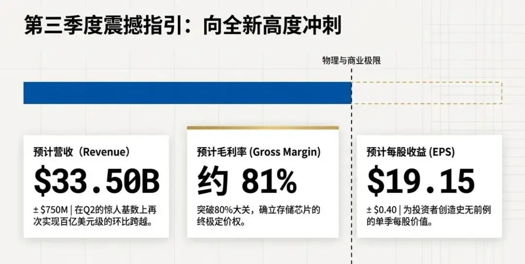 公司预计第三财季营收中值335亿美元,远高于市场此前预期;非GAAP每股收益中值19.15美元,同样明显高于分析师预估。管理层还给出约81%的毛利率目标。