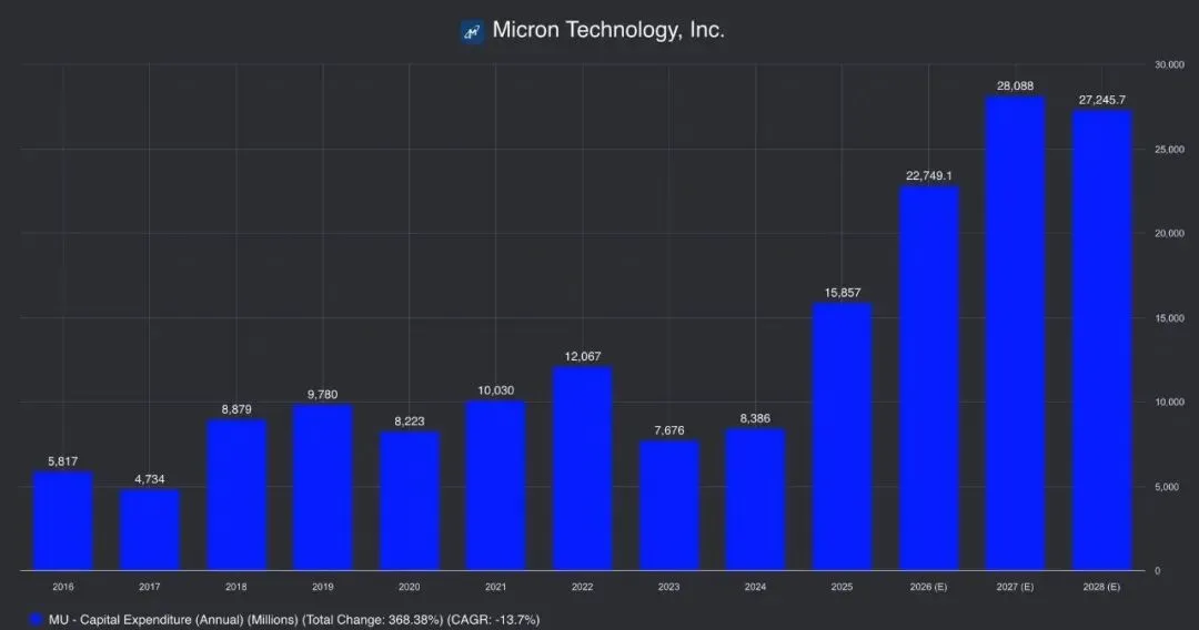 美光把2026财年的资本开支指引上调到250亿美元,并预计下一财年还会继续明显增加。从产业逻辑看,这当然是对未来需求有信心的体现;但从交易逻辑看,市场也会担心,更高的投入会不会压制后续自由现金流,或者让未来利润率的上行节奏没现在这么顺。