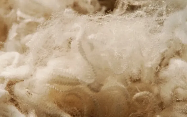 这种结构既保持羊毛的天然性能,也解决了纤维耐磨与弹性的问题。