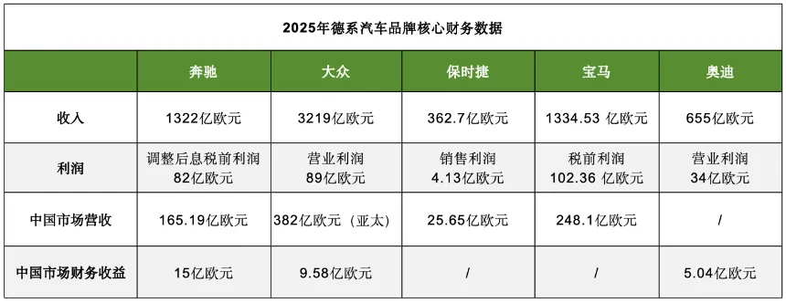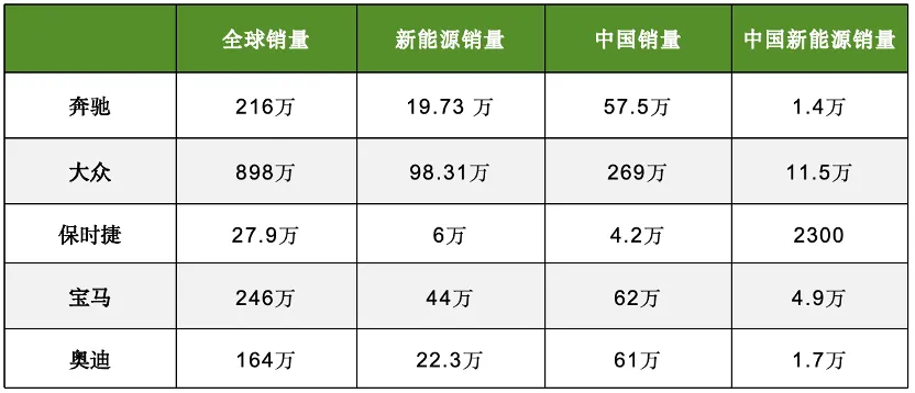 当把这五份财报放在一起分析、对比,则更能直观看到,曾经风光无两的传统德系在时代洪流下真实的处境。