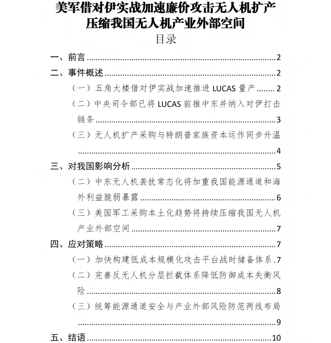 与此同时,美国中央司令部此前已在中东部署LUCAS(低成本无人作战攻击系统)中队,特朗普家族关联资本也同步切入攻击无人机产业链,显示这一轮扩产并非单纯装备采购,而是战时需求、工业动员、资本运作和政策排他并线推进。低成本可消耗无人机正由“战场配角”快速转为“体系变量”,其外溢影响已不止于中东局部战事,而是开始冲击防空成本结构、能源通道安全和全球无人机产业竞争格局。