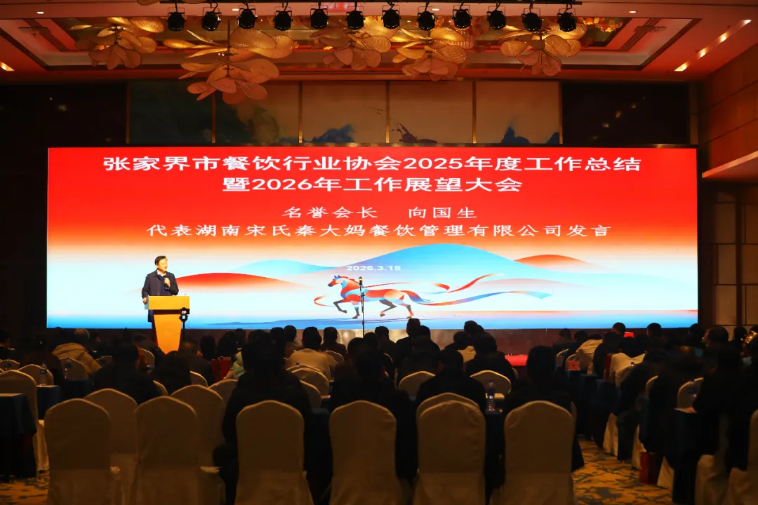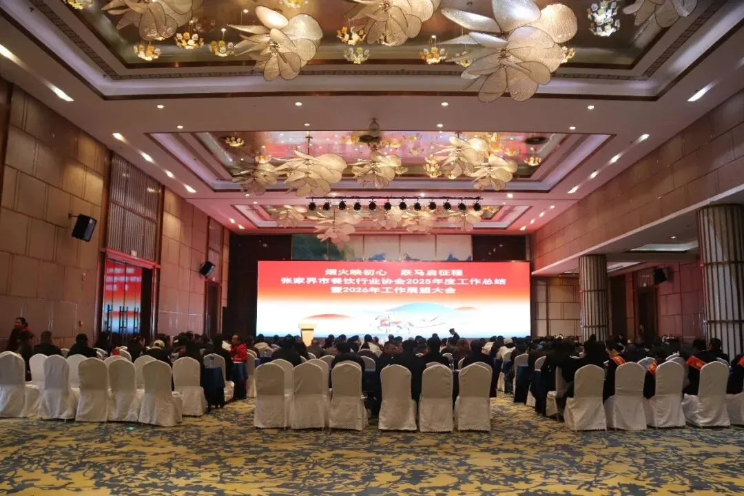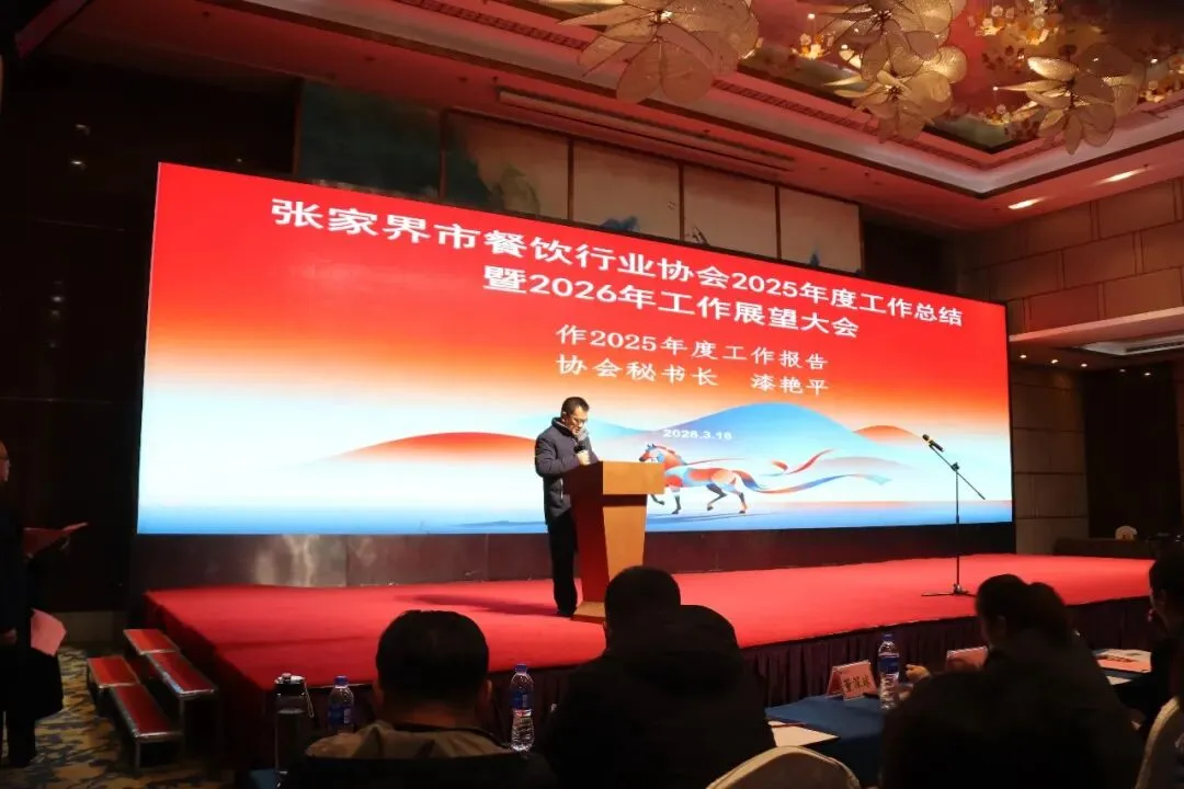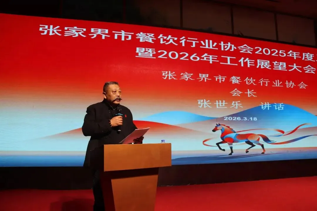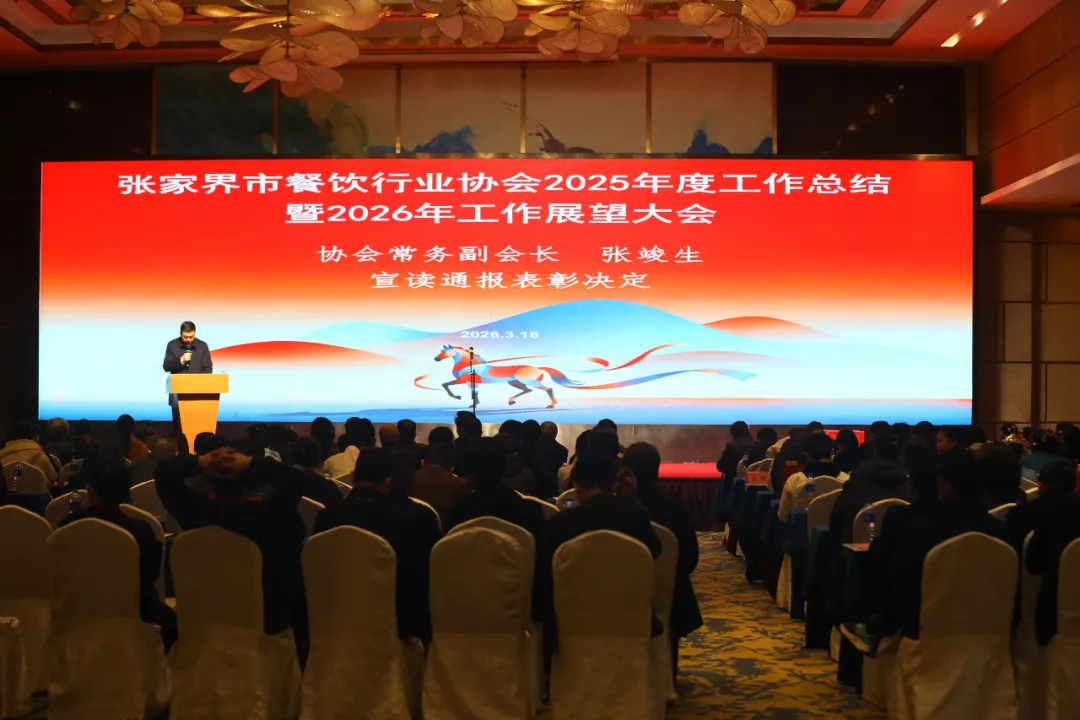 2026年3月18日,以“烟火映初心,跃马启征程”为主题的张家界市餐饮行业协会2025年度工作总结暨2026年工作展望大会在张家界蓝湾博格酒店隆重举行。张家界餐饮行业精英、企业代表及特邀嘉宾齐聚一堂,共同回顾过去一年极不平凡的奋斗历程,共谋新一年行业高质量发展的实施路径。