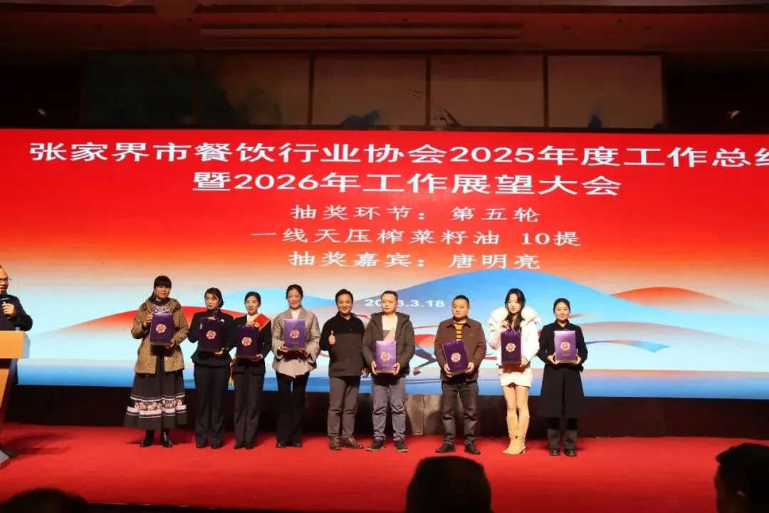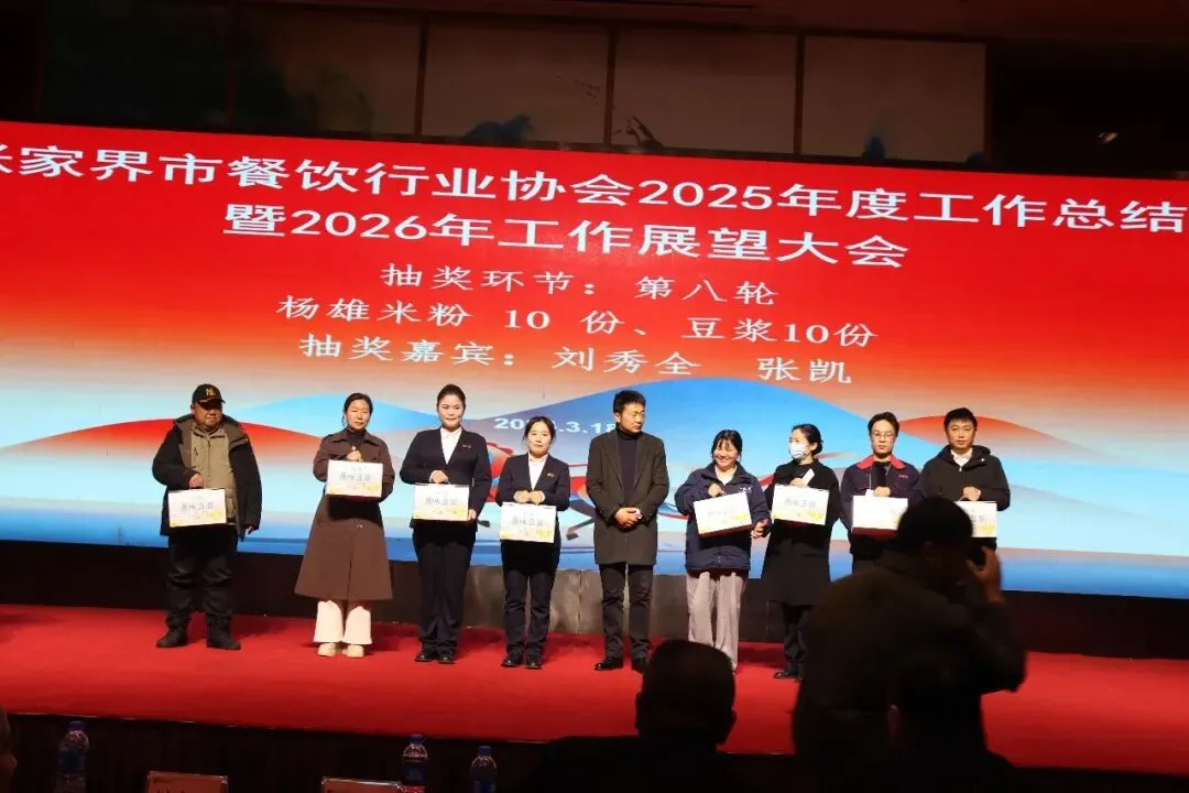 会议期间还穿插了多轮激动人心的抽奖互动,现场气氛高潮迭起,欢声笑语不断,展现了张家界餐饮人团结一心、积极向上的精神风貌。