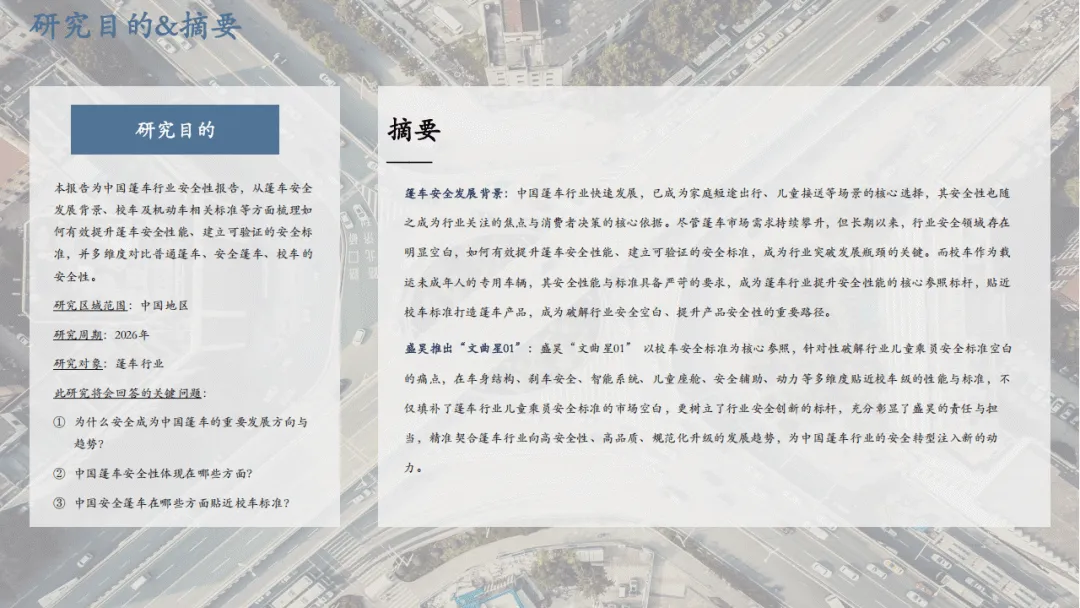 2026年中国篷车行业安全性报告聚焦行业安全发展痛点,梳理提升篷车安全性能的路径,多维度对比普通篷车、安全篷车与校车的安全性,指出贴近校车标准是篷车行业安全升级的核心方向。当前篷车已成为家庭短途出行、儿童接送的核心选择,安全性成为行业发展焦点和消费者决策关键,但行业长期存在安全标准空白,产品重性价比轻乘员安全,尤其是儿童乘员安全缺乏规范指引,推动篷车从“基础代步”向“安全出行”转型成为行业高质量发展的必然趋势,而校车严苛的安全标准则成为篷车行业提升安全性能的重要参照。