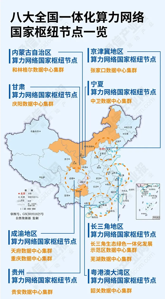 2022年2月,国家发展改革委、中央网信办、工业和信息化部、国家能源局联合部署,在京津冀、长三角、粤港澳大湾区、成渝、内蒙古、贵州、甘肃、宁夏8地启动国家算力枢纽节点建设,并规划10个国家数据中心集群,“东数西算”工程全面实施,旨在优化东西部算力布局、依托清洁能源降碳增效、缩小区域数字基建差距。