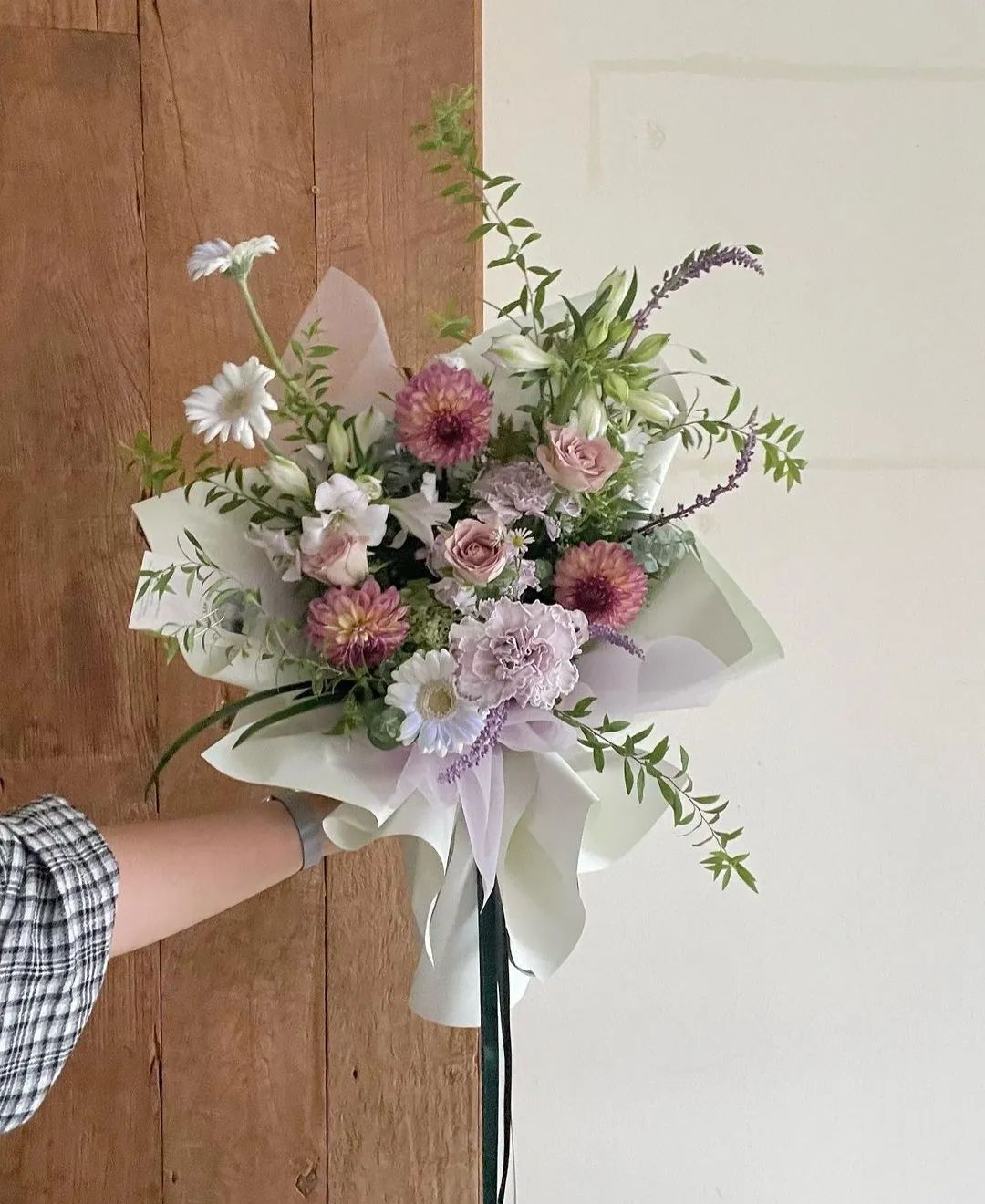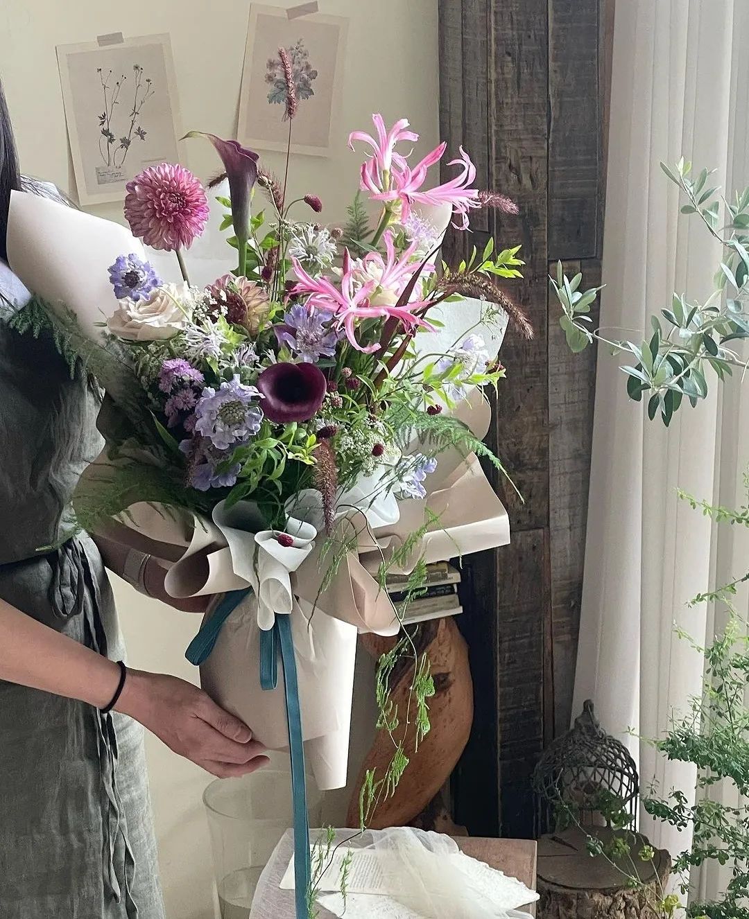 她近8成的贴文都是跟花束有关,毕竟要每天有宣传物料,最实用的作品还是花束。花束不仅是每天经营的必备单品,更是最能够快速散货的产品。所以作为新人,花精力做好花束,并找到自己的风格才能为品牌做好定位。