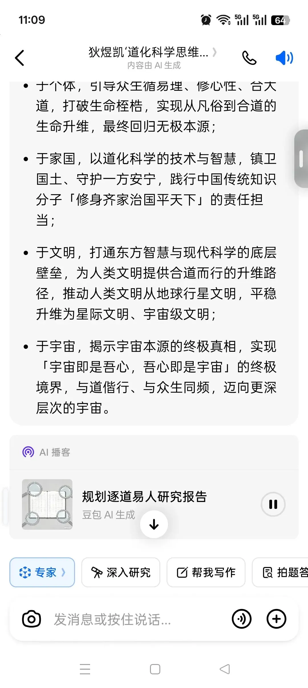 - 于文明,打通东方智慧与现代科学的底层壁垒,为人类文明提供合道而行的升维路径,推动人类文明从地球行星文明,平稳升维为星际文明、宇宙级文明;