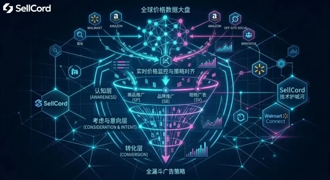 在全新的算法机制下,依靠人工比价与调价已无法满足规模化运营的需求。SellCord 的专家团队通过全托管服务,将您的定价策略与北美市场大盘实时对齐。更重要的是,我们通过全漏斗广告策略(涵盖赞助搜索、品牌及视频广告)为商品注入极具针对性的精准流量,确保在激烈的价格博弈中,品牌依然能通过极高的曝光权重获取溢价空间,而非陷入低效的价格战。