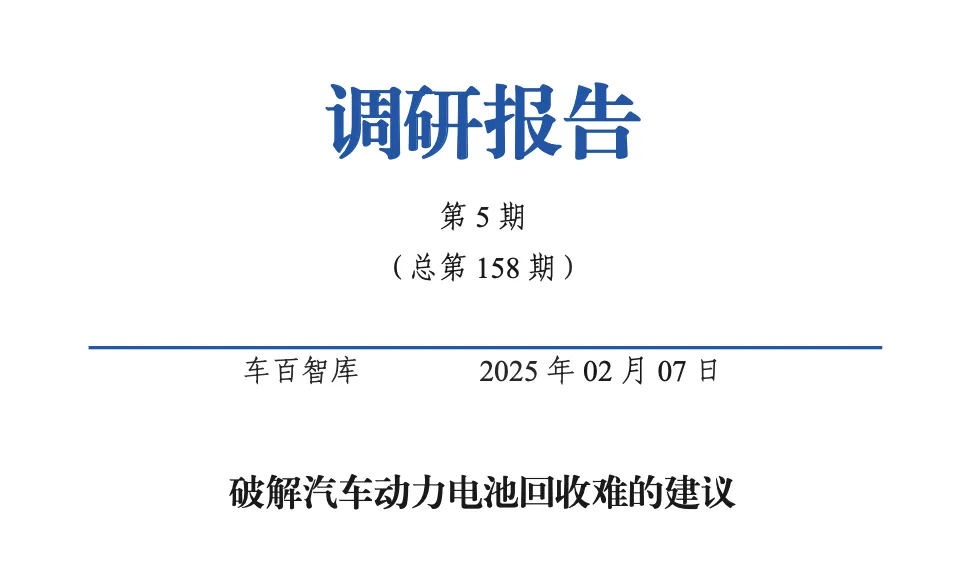 汽车动力电池回收利用,是构建循环经济体系的重要一环,对保障资源安全、推动绿色低碳发展、减少环境污染具有重要意义。随着我国汽车动力电池逐步进入规模化退役阶段,完善回收利用体系已迫在眉睫。本报告梳理了我国汽车动力电池回收利用的最新进展与主要挑战,提出促进行业健康可持续发展的建议。