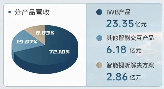 产品结构方面,智能交互平板 / 交互式白板(IFPD/IWB)作为核心收入来源,2025 年实现收入 23.35 亿元,占营业收入比重 72.10%,尽管同比下降 8.49%,但该产品在全球教育市场排名第二,海外品牌 “Newline” 以 23.2% 的市占率稳居美国 IFPD 市场第一,龙头地位稳固。