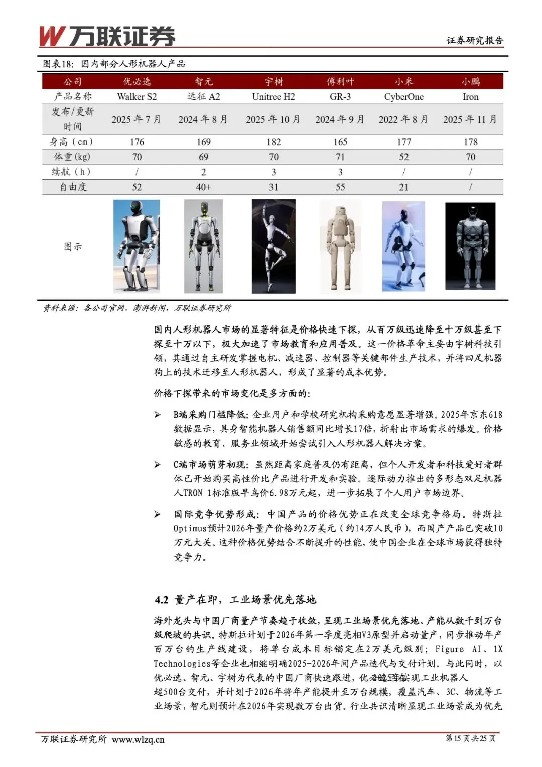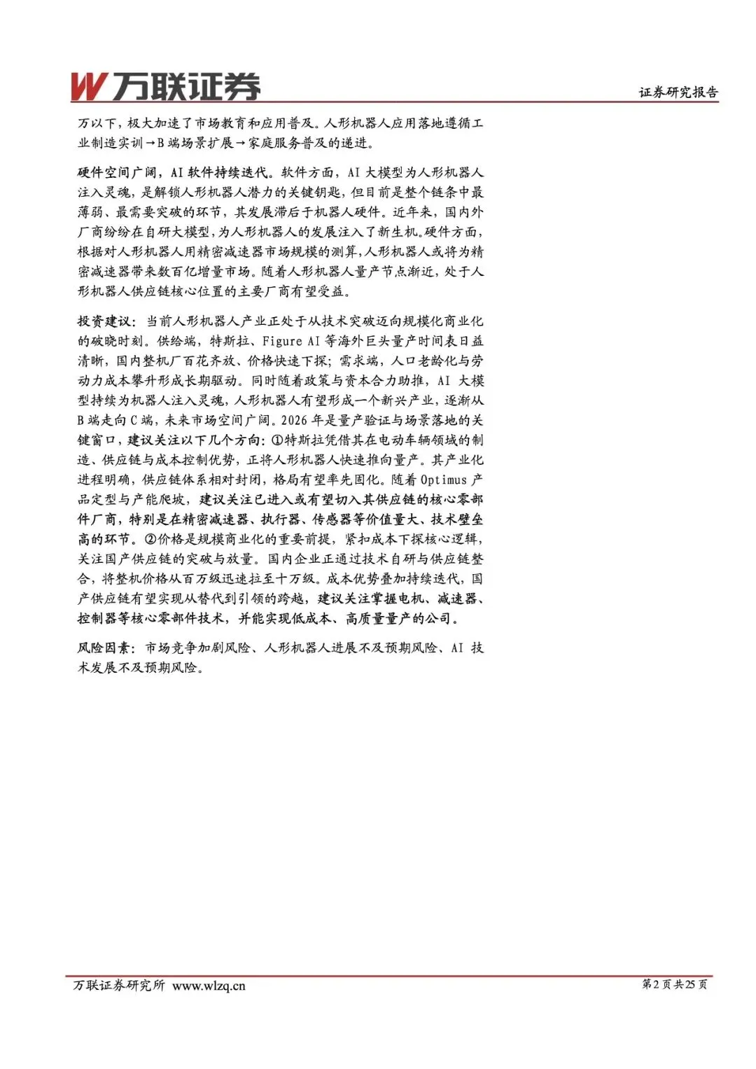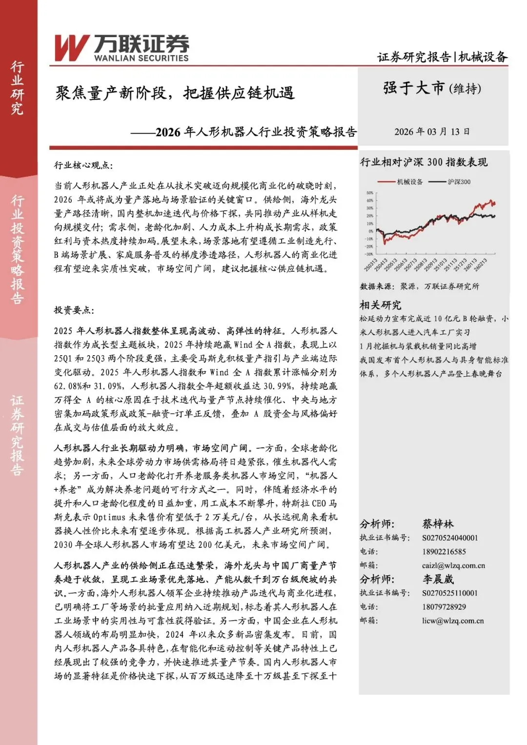 报告名称:《2026年人形机器人行业投资策略报告:聚焦量产新阶段,把握供应链机遇-万联证券》