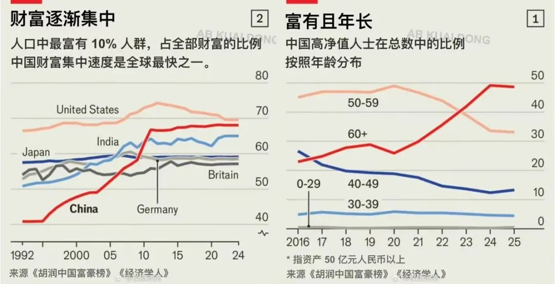 当然,这样的分化跟胡润中国富豪榜及经济学人近期发布的一个数据相互印证:中国的财富快速集中在少数人手中,这样直接导致了消费市场的两极分化。