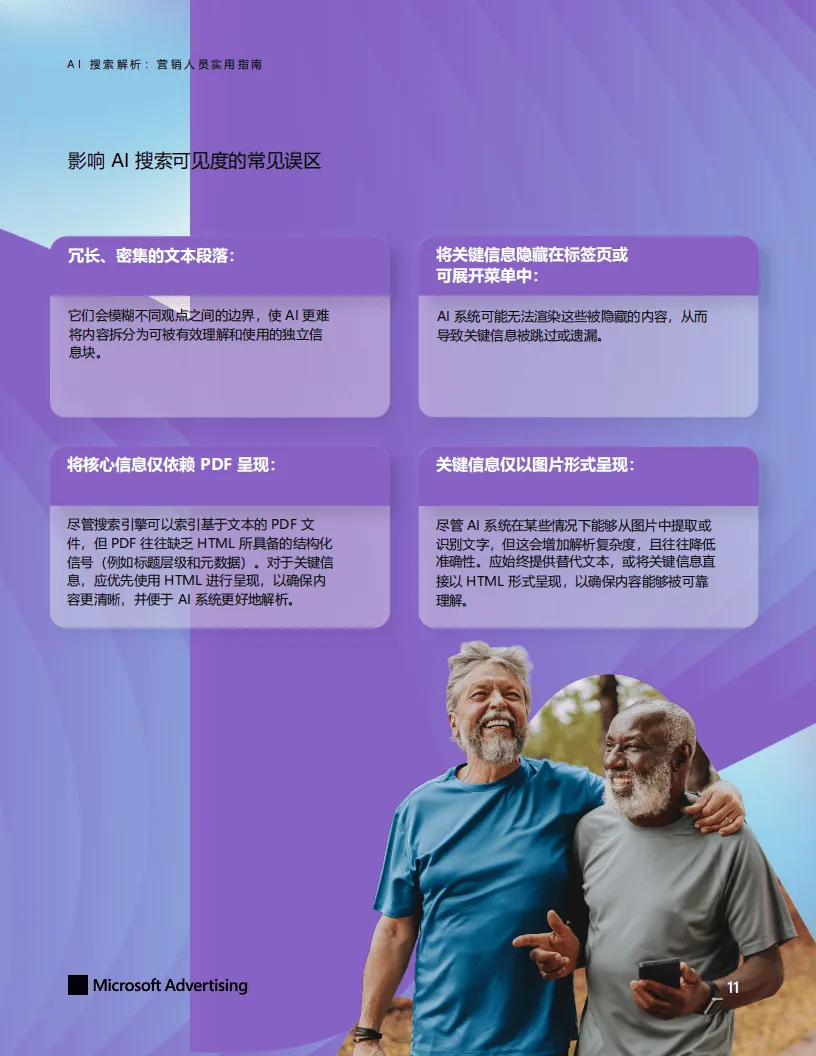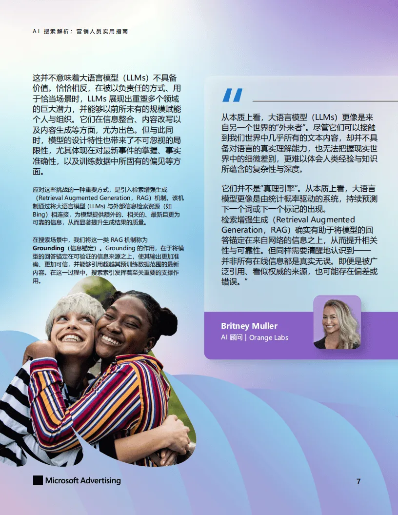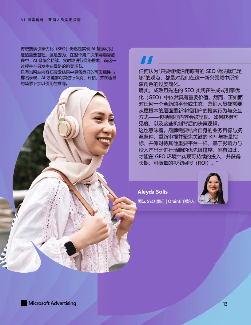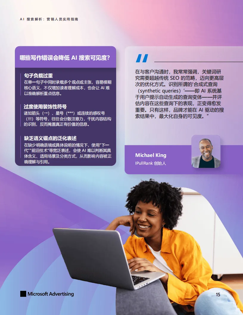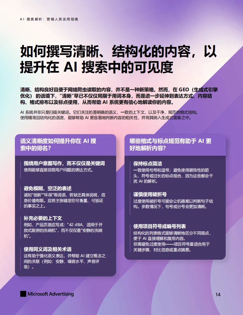 这份微软2026年AI搜索解析营销指南,聚焦AI驱动下搜索从“关键词”向“对话式”转型的行业趋势,为营销人员提供了兼具理论与实操的行动蓝图,核心围绕AI搜索的运作逻辑、品牌呈现方式及适配的营销战略展开,旨在帮助品牌在AI时代提升搜索可见度、实现商业价值。