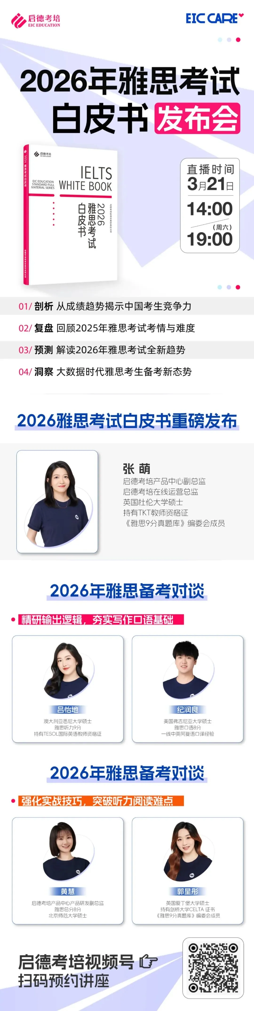 我们诚挚地邀请你参加3月21日下午14-19点的 【2026年雅思考试白皮书发布会】 ,一起聊聊这些你关心的问题。