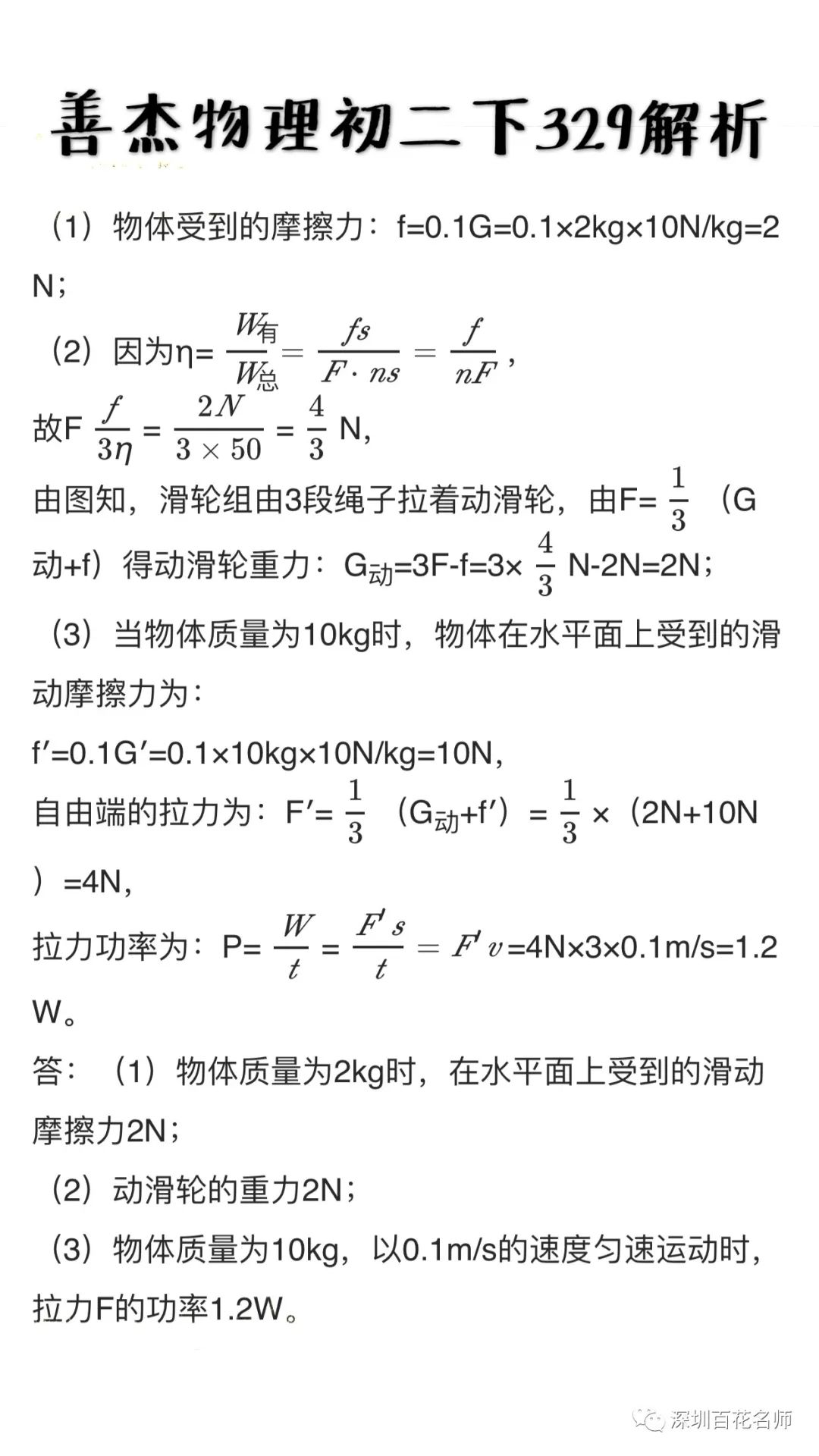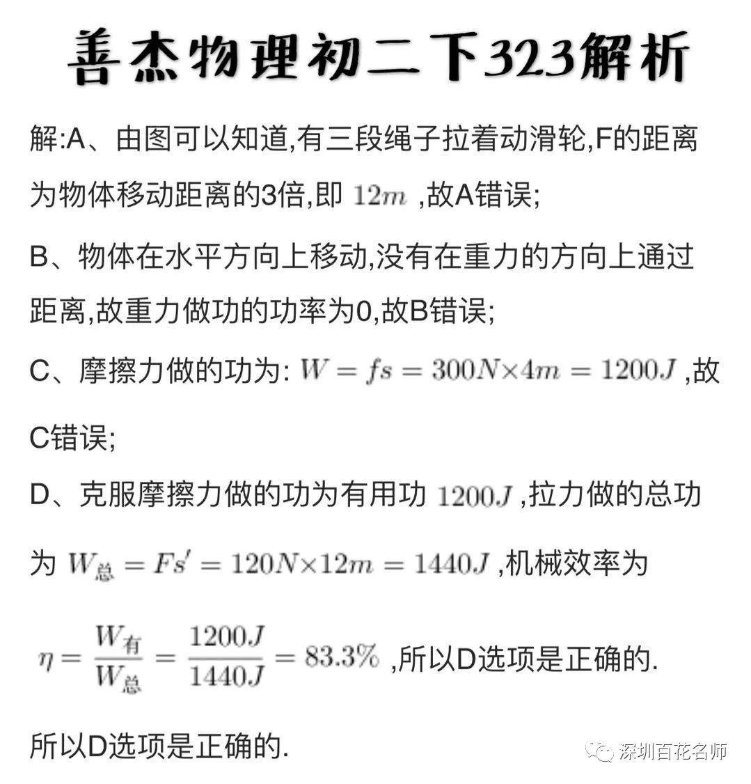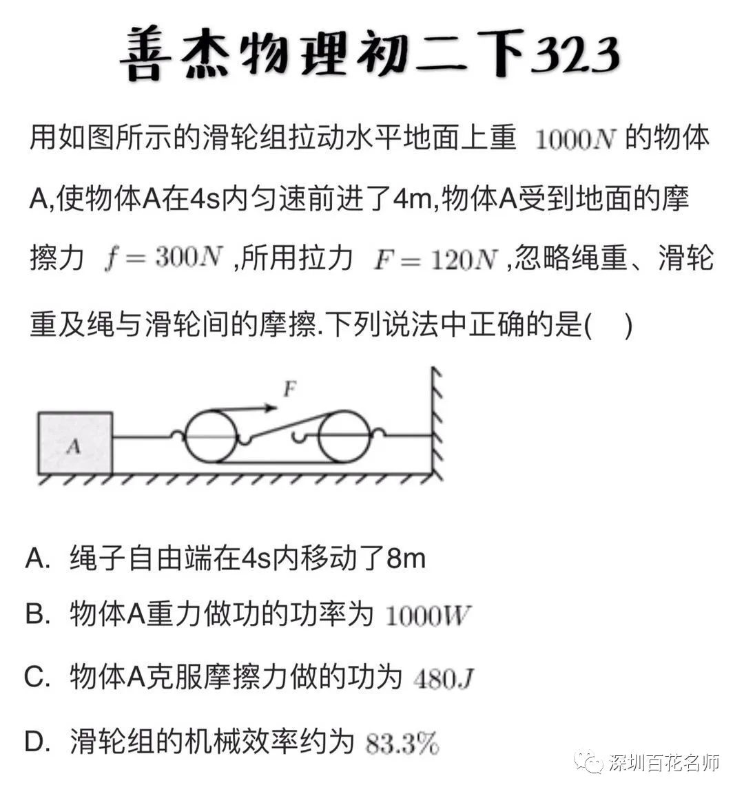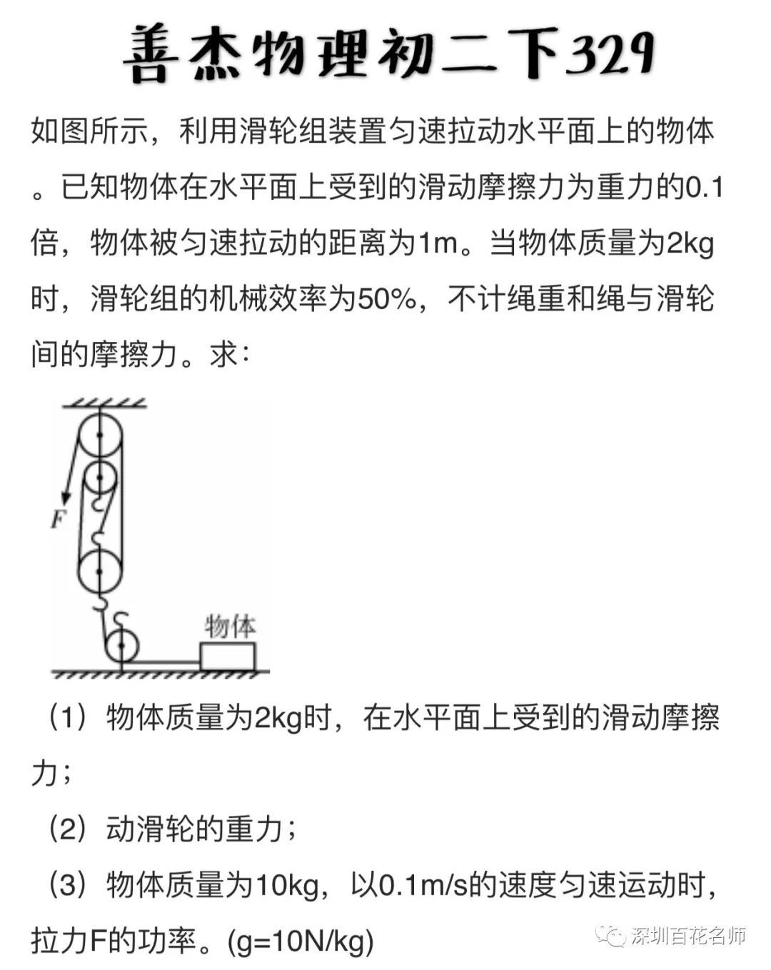 善杰教您掌握初中物理水平拉物体机械效率计算题