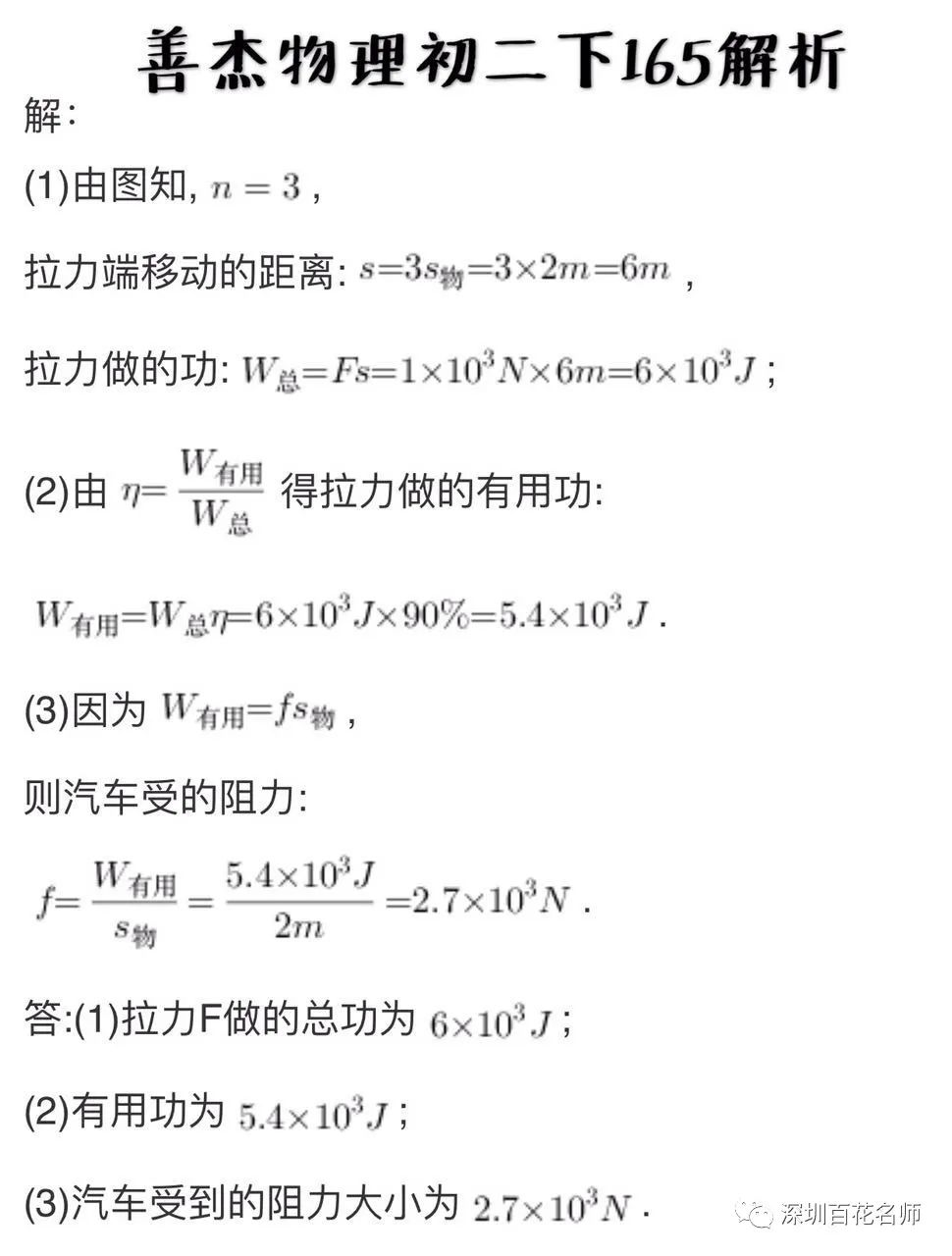 如果你想获得水平拉物体机械效率计算题的满分,必须先掌握好公式的推导