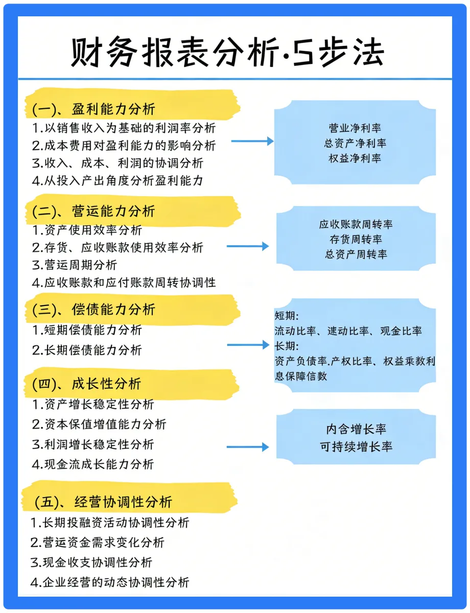 今天给大家分享财务报表分析五步法~