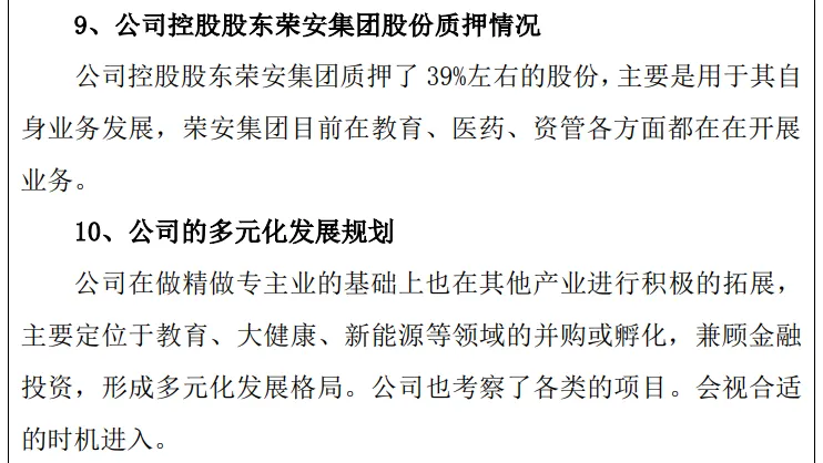 终于公司质押了39%的股份,换来下面一堆公司,多元化的步伐迈出去。