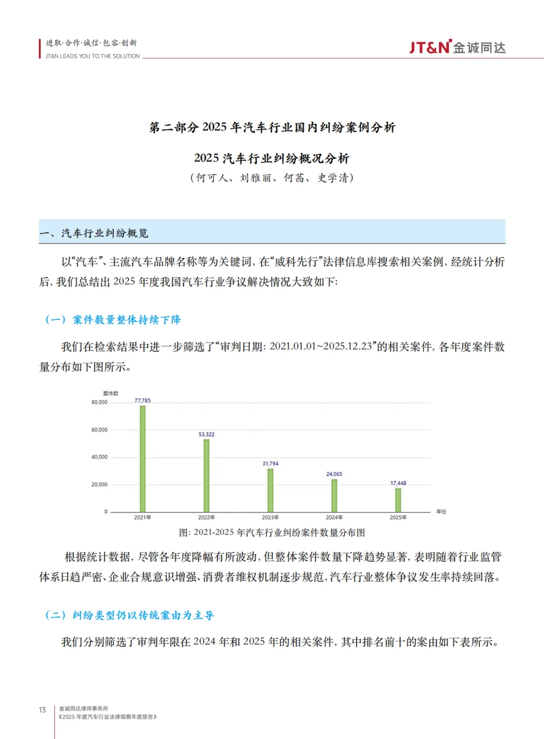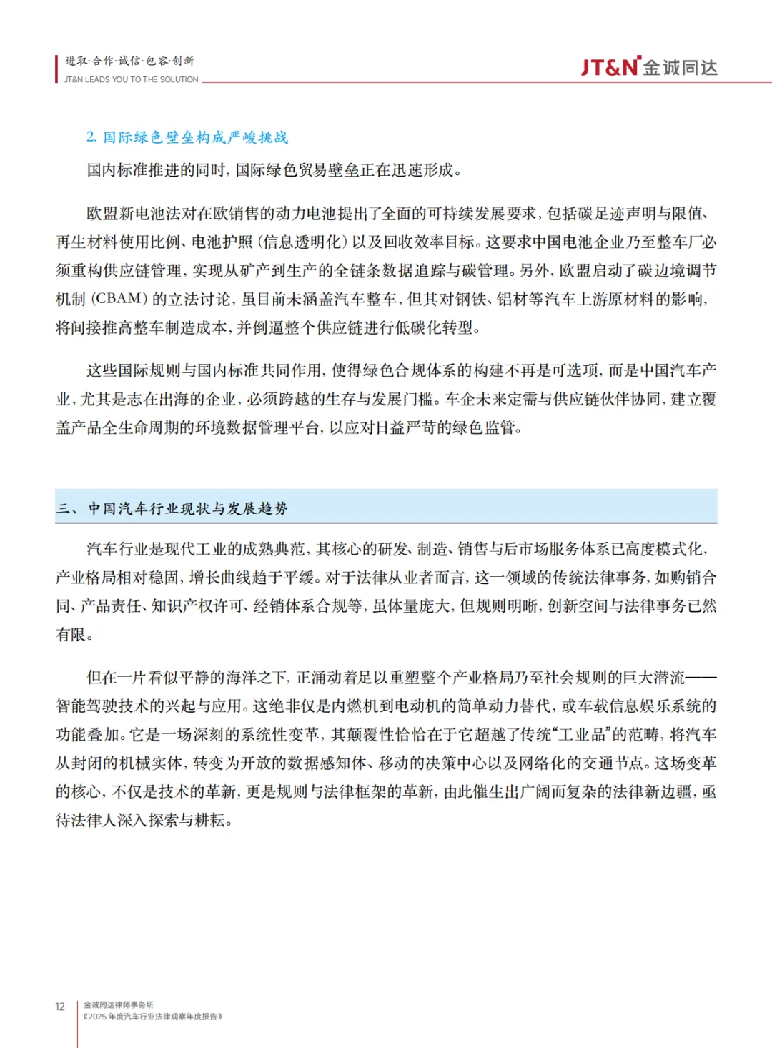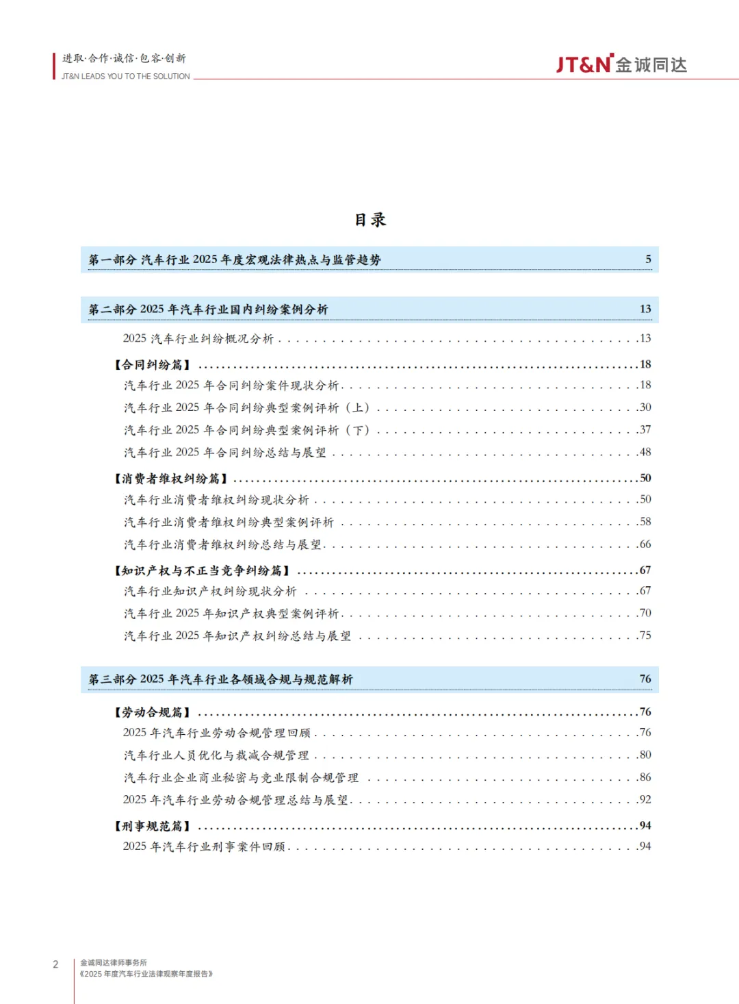 《2025 年度汽车行业法律观察年度报告》围绕行业转型期的法律热点、纠纷实践、合规要求及未来趋势展开全面分析,核心内容总结如下: