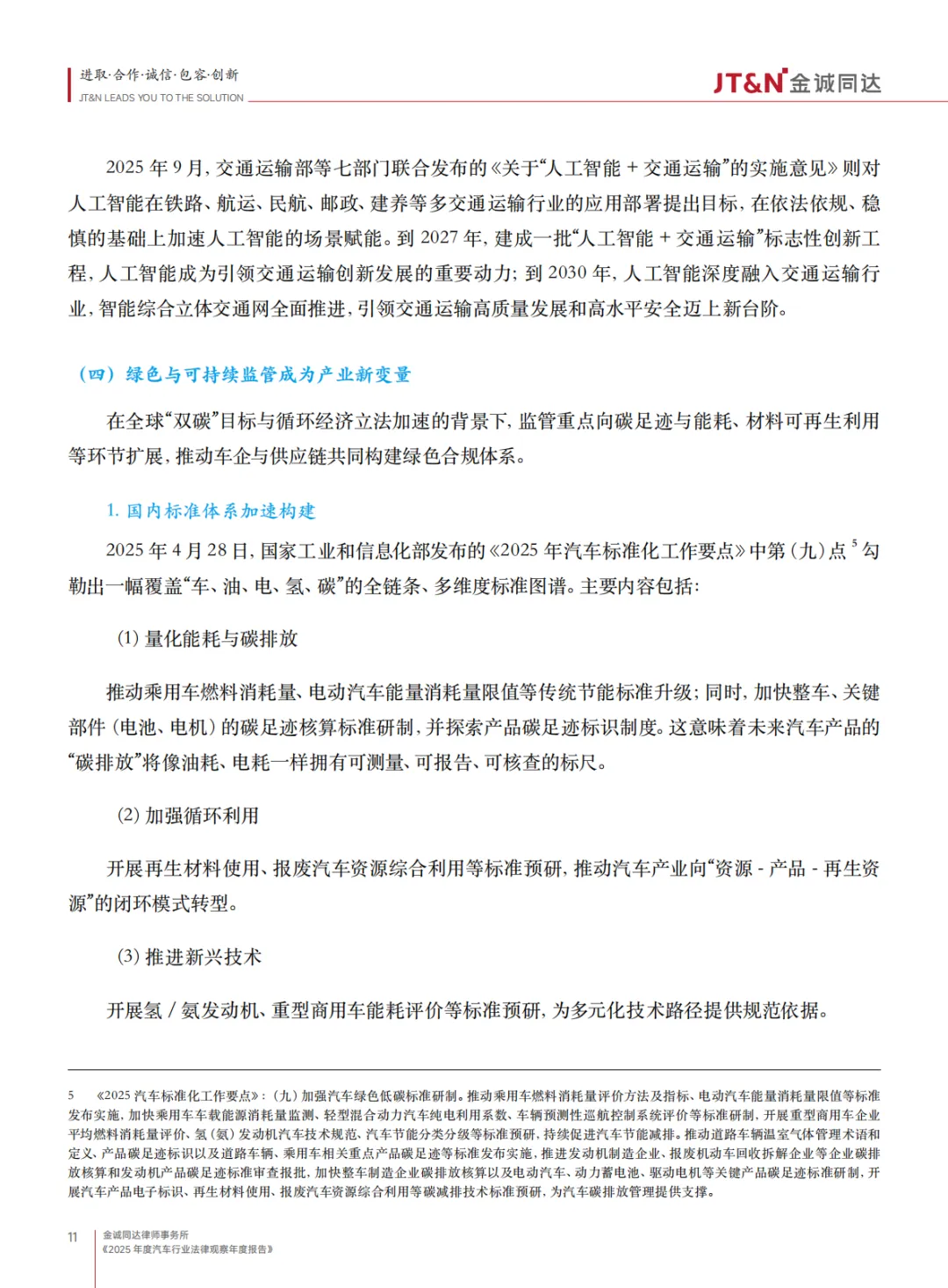 :为 L2 级辅助驾驶划定安全基线,要求强化驾驶员状态监控;审慎推进 L3 级及以上自动驾驶,明确 “有条件准入” 原则,限定运行区域、责任主体等边界。 - 绿色可持续监管强化
