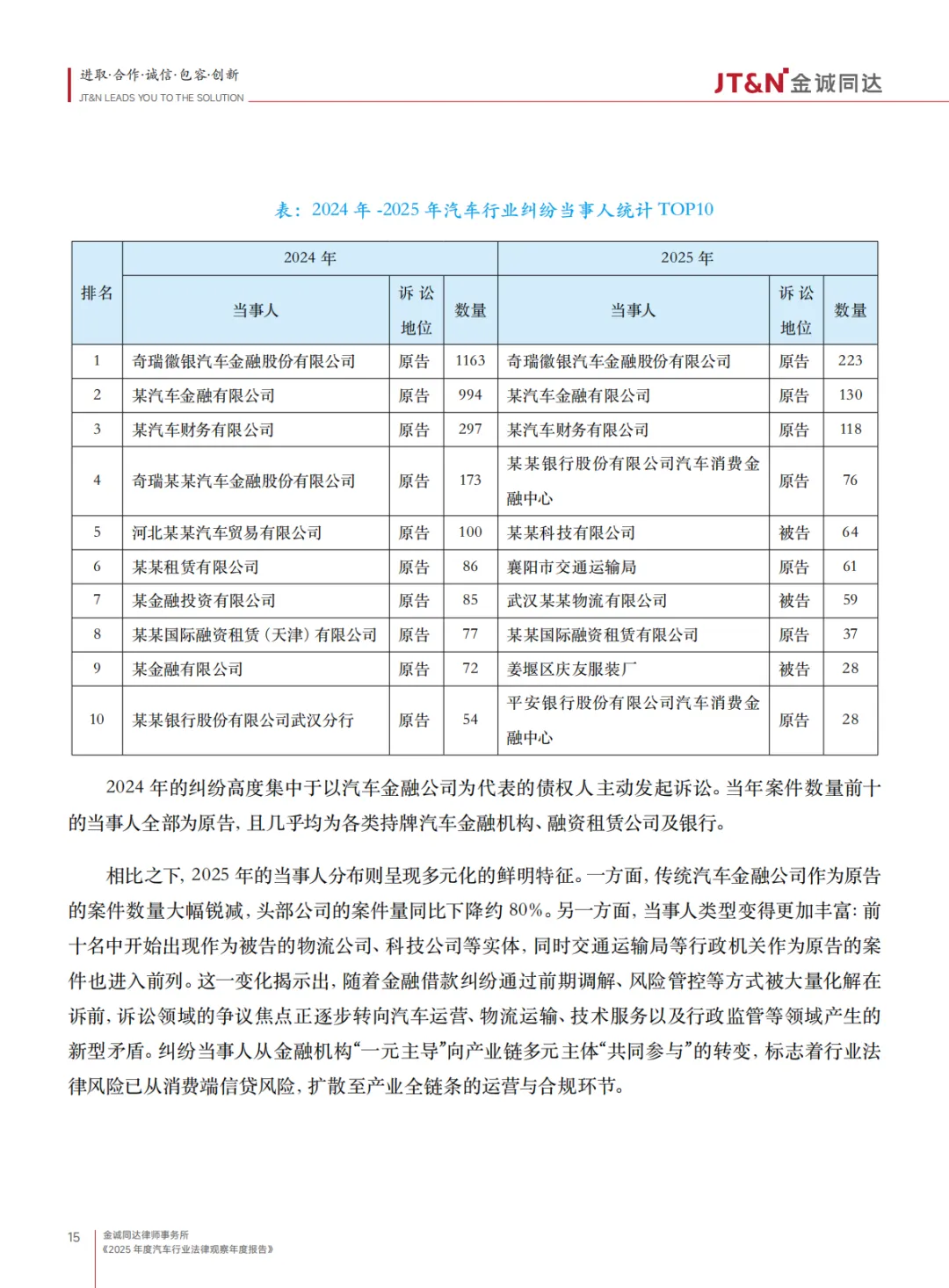 :从汽车金融机构 “一元主导” 转向产业链多元主体参与,物流公司、科技公司、行政机关等成为纠纷新主体,法律风险扩散至全链条运营环节。
