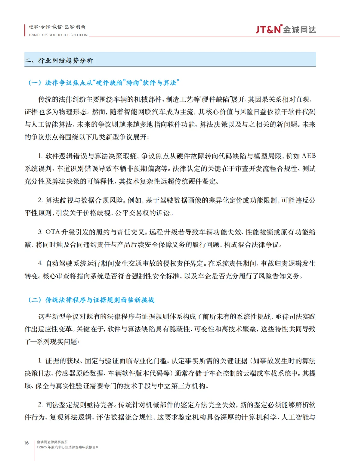 :争议焦点从 “硬件缺陷” 转向 “软件与算法”,涉及 AEB 系统误判、OTA 升级责任、自动驾驶事故归责等,对证据获取、司法鉴定提出新挑战。
