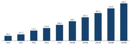 图:中国工业机器视觉产品市场规模(2020-2029E),单位:亿元
