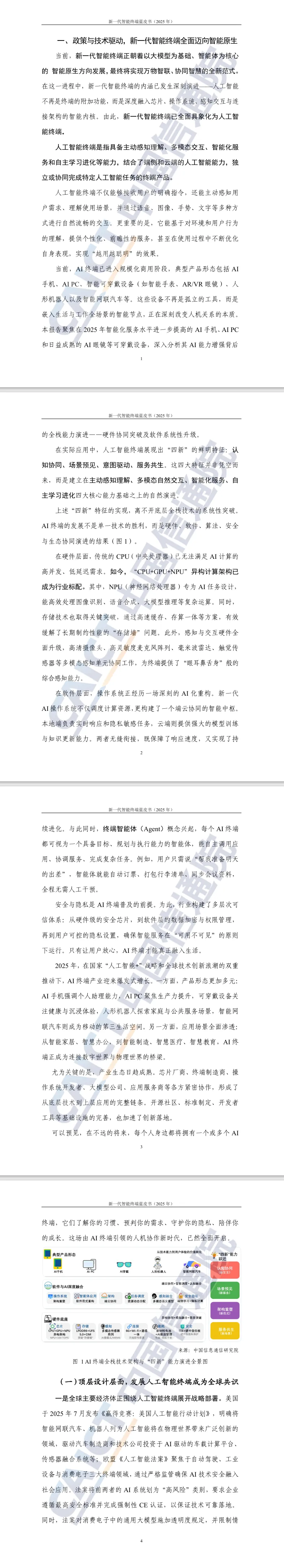 摘要:本报告系统解读了新一代智能终端从"人工智能+终端"到人工智能终端的历史性跨越,让行业从业者与投资者深入了解产业发展现状与核心逻辑。终端呈现认知协同、场景预见等"四新"特征,AI手机、AIPC等产品规模化商用,硬件端"CPU+GPU+NPU"异构架构成标配,软件端操作系统与智能体深度融合。政策加持下,终端生态持续完善,为把握智能终端普及红利提供清晰指引。