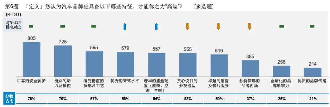 当中国汽车行业真正驶入转型深水区,中国汽车品牌由此开启品牌向上最关键的跃升之路。如果把时间轴向前拉长20年,就会发现在这个周期中,中国高端乘用车市场几乎没有遭遇过真正的颠覆。在合资品牌“制霸”中国市场的阶段,市场和用户从对品牌等级的排序,到价格梯队的制定,再到消费认知的形成,始终保持着高度一致。对于“谁是高端玩家”和“怎样才能打赢高端局”这样的疑问,消费者早已心中有数。但现在,中国的高端车市场终于出现了一些微妙且实质性的变化。比如,新一代年轻人尤其是高线市场的青年,已经不再像父辈那样迷恋BBA,新能源汽车的迭代和智能化科技的涌入,让他们重新思考一个问题:高端化的产品和品牌,也可以不拼历史积淀和文化传承。对于已经进入存量市场竞争的高端车消费领地,这种认知反转是格外凸显的——当年轻一代消费者不再迷信流传已久的品牌叙事,而开始聚焦产品价值和用户体验本身,尤其是数字化和智能化科技带来的变革,那么足以从一个侧面说明:国内高端汽车消费的浪潮正在被改写。正是在这样的市场背景下,车壹传媒品牌研究院发起并展开了一场真正深入用户认知层面的市场调研,并以一份覆盖234位业内人士以及1038位大众消费者的调研数据,试图从更客观和理性的视角,为行业提供一个极具参考价值的针对高端汽车品牌的观察样本。在本次市场调研中,调查问卷共围绕8项主题展开,从品牌认知、品牌预期、品牌溢价、高端标准、以及购买高端汽车品牌时用户的决策逻辑等不同维度,对中国消费者心中的“豪华定义”进行追问和追踪。