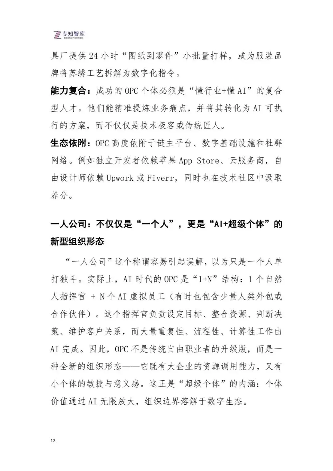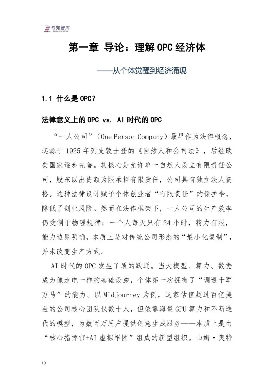 OPC(One Person Company)不再局限于传统法律意义上的“一人有限责任公司”,而是演变为 “AI+超级个体” 的新型组织形态: