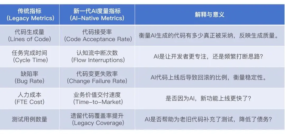 传统的“代码行数”或“工时节省”已不足以衡量AI的价值。Gartner和IDC建议企业采用更立体的度量框架: